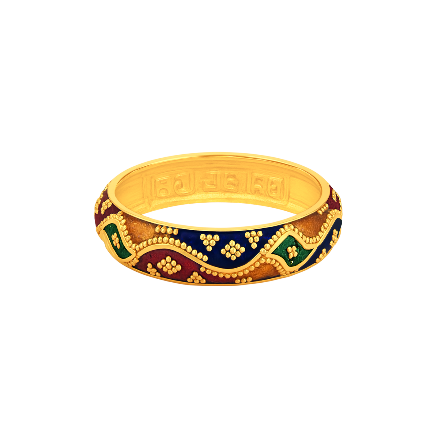 22k gold meenakari band in traditional colors. Ring measures 5mm thick and ring is size 7.5.