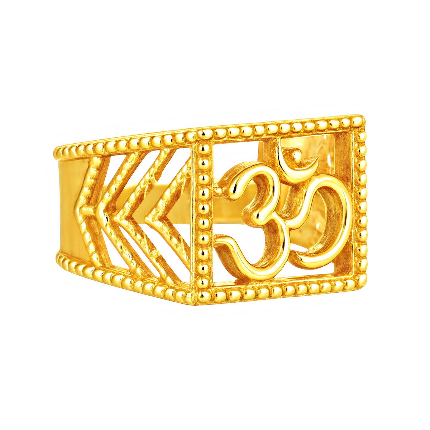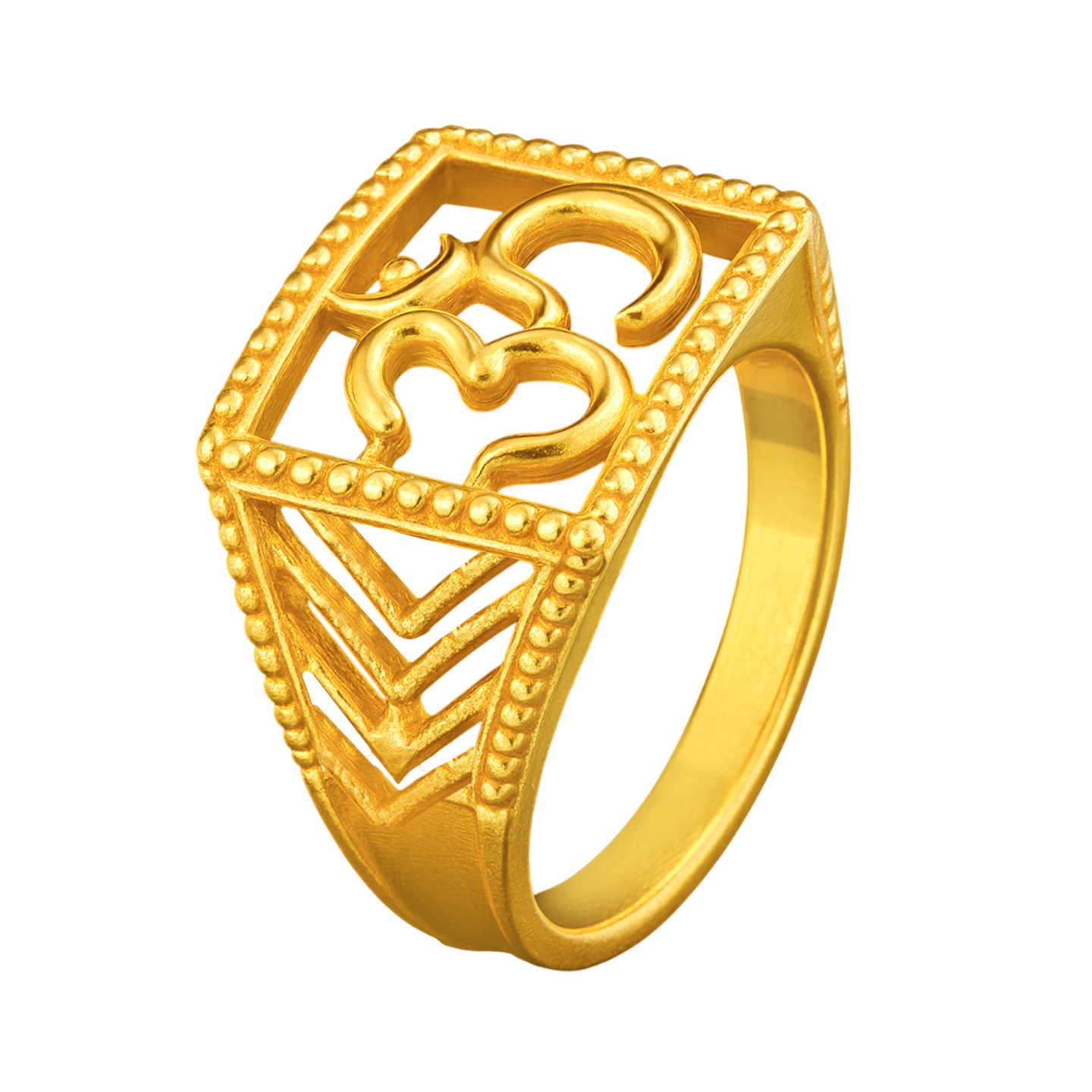 22k gold baby ring measuring 15mm in diameter. Band measures 3mm to 8mm in thickness. Ideal for a newborn and baby gift.