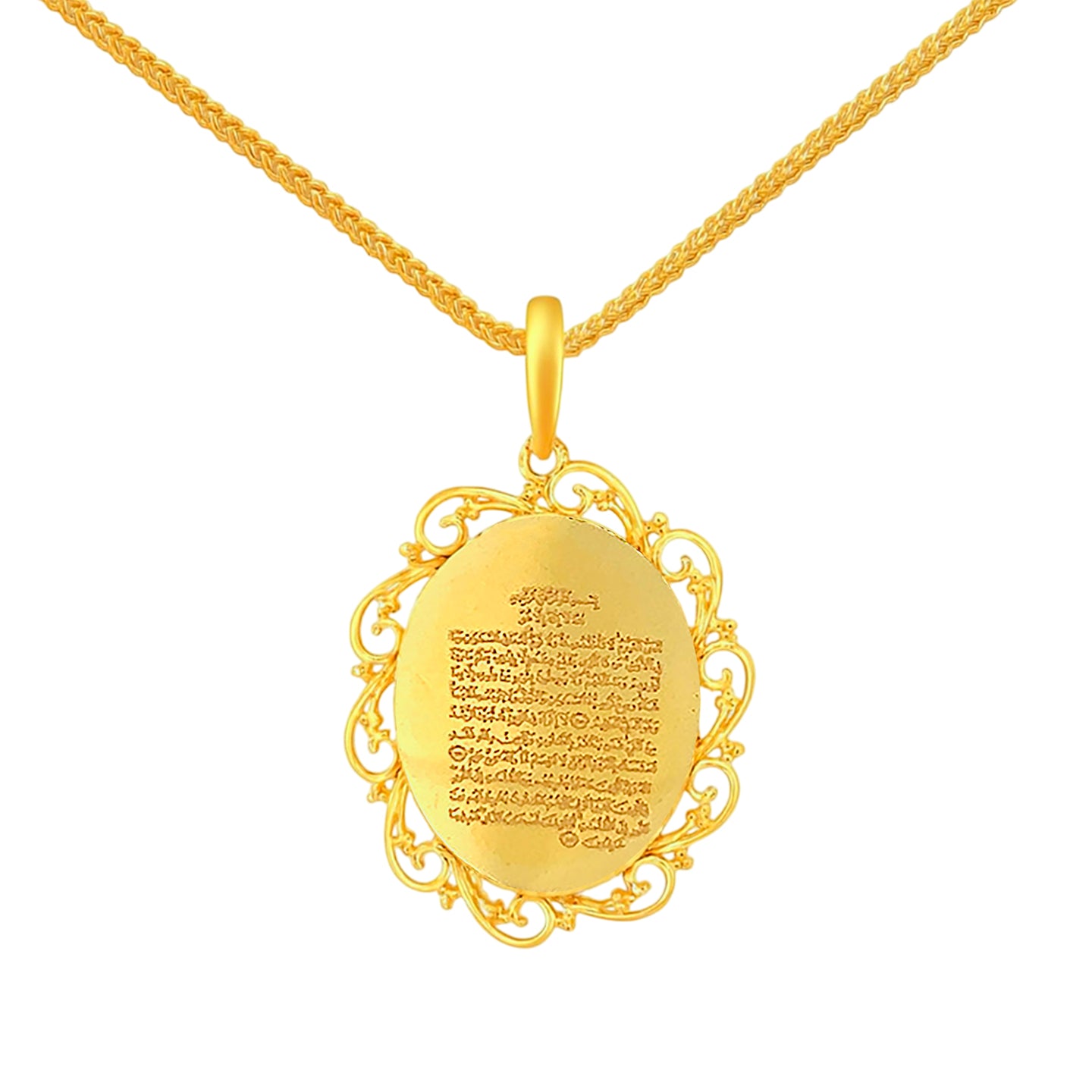 22k gold ayatul kursi pendant in portrait style. Pendant measures 30mm in length and 24mm in width. Pendant only, chain not included. Can fit a 4mm or large chain.