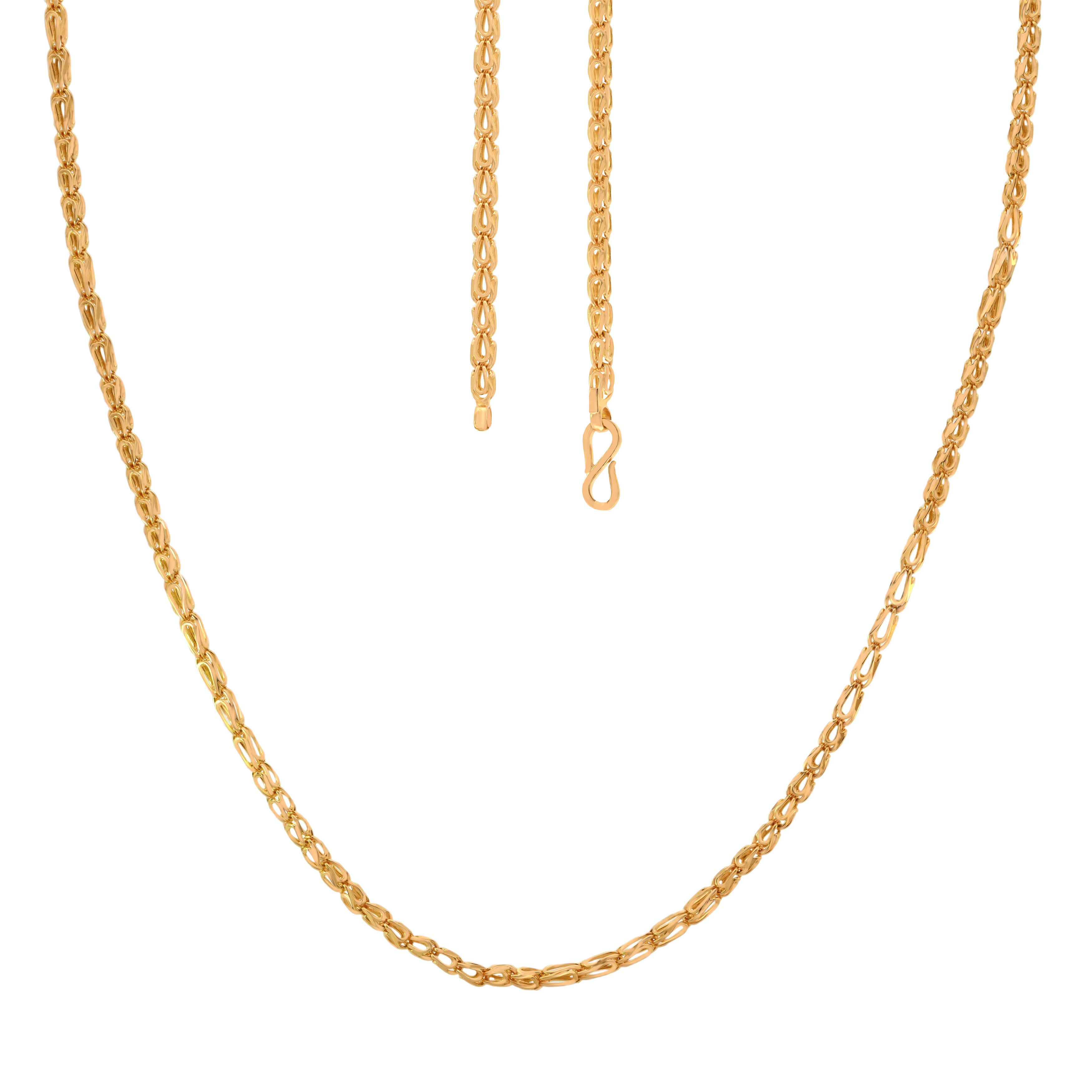 22k Gold South Indian style handmade chain with S hook closure measuring 22 inches long and 3mm thick.