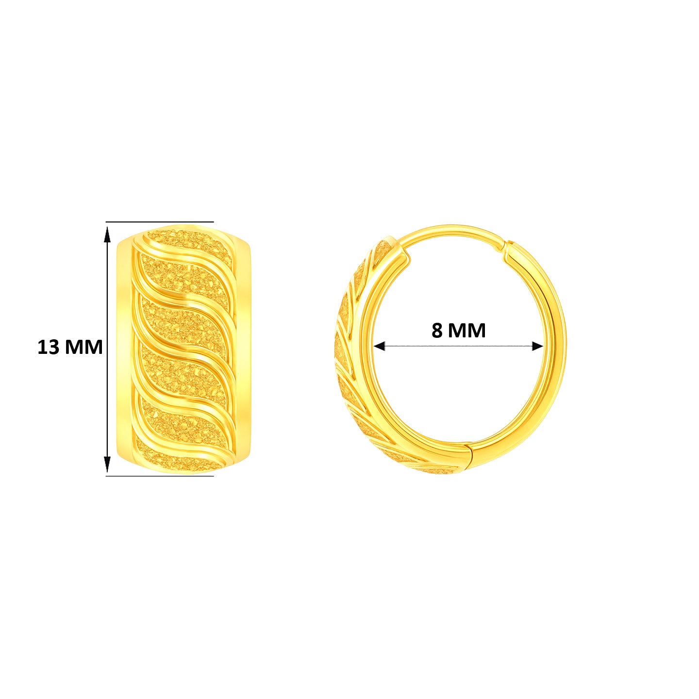 22k gold huggie earrings with laser cut design. Earrings measure 13mm in total length and 8mm in width.