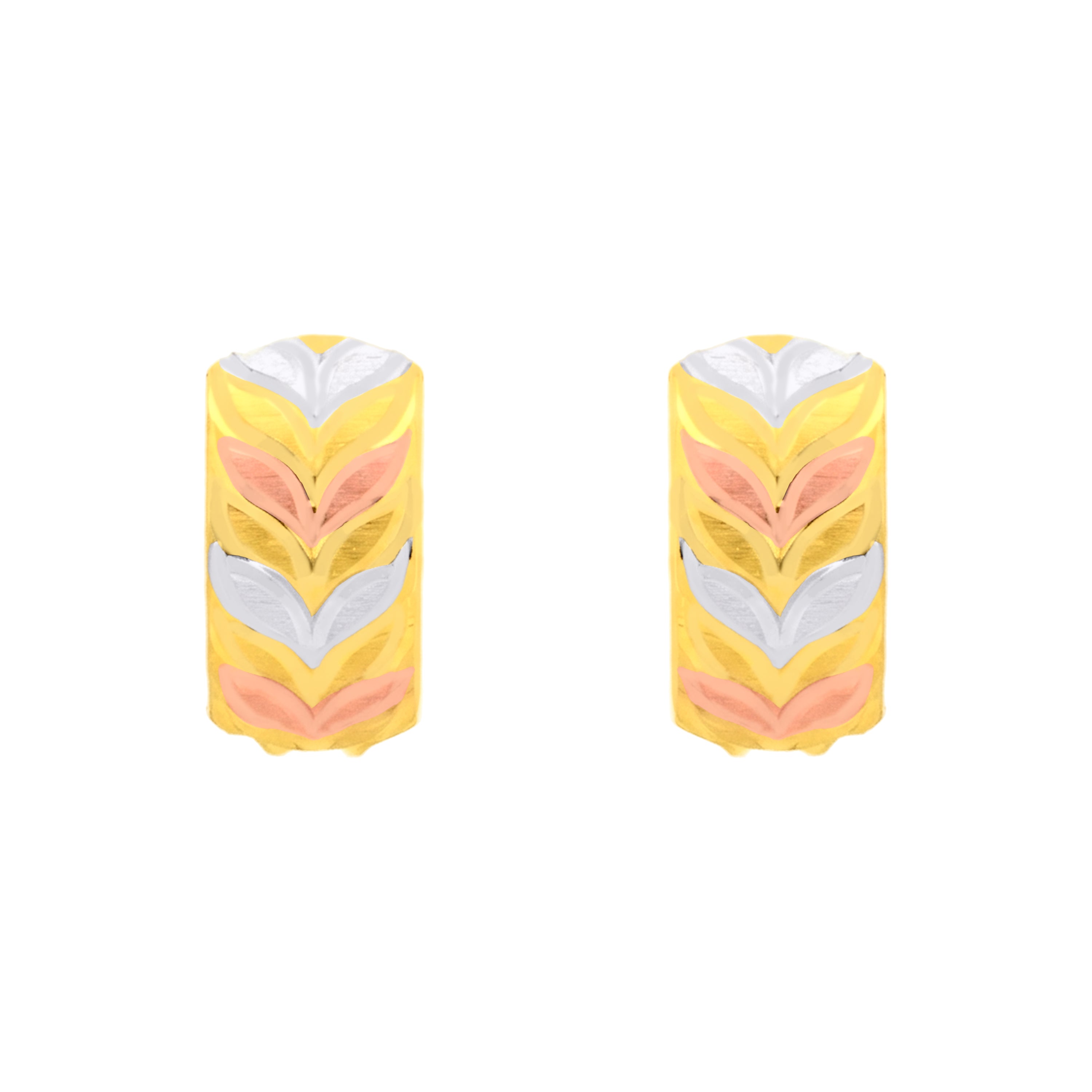 22k Three-Tone Gold Hoop Medium Earrings in size 12mm length x 10.8mm width. Total gold weight is approximately 3.05g