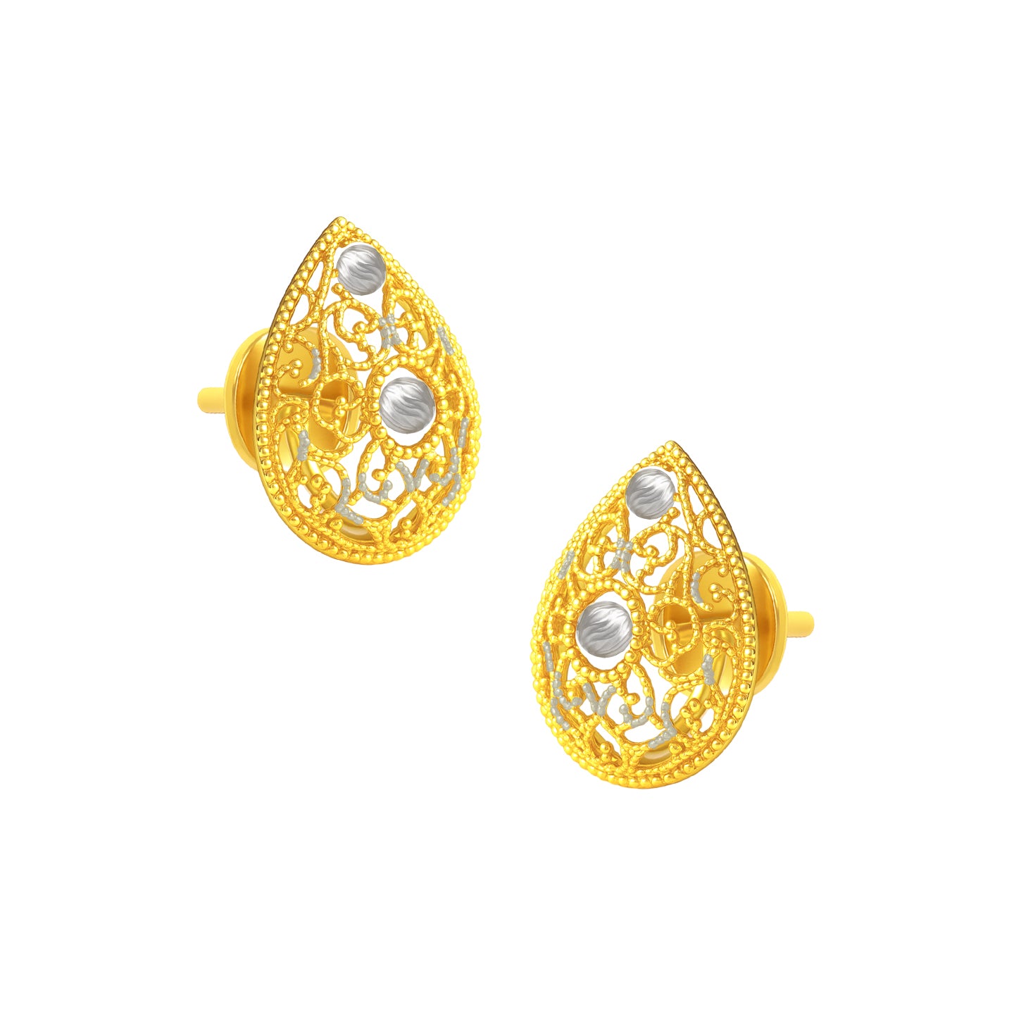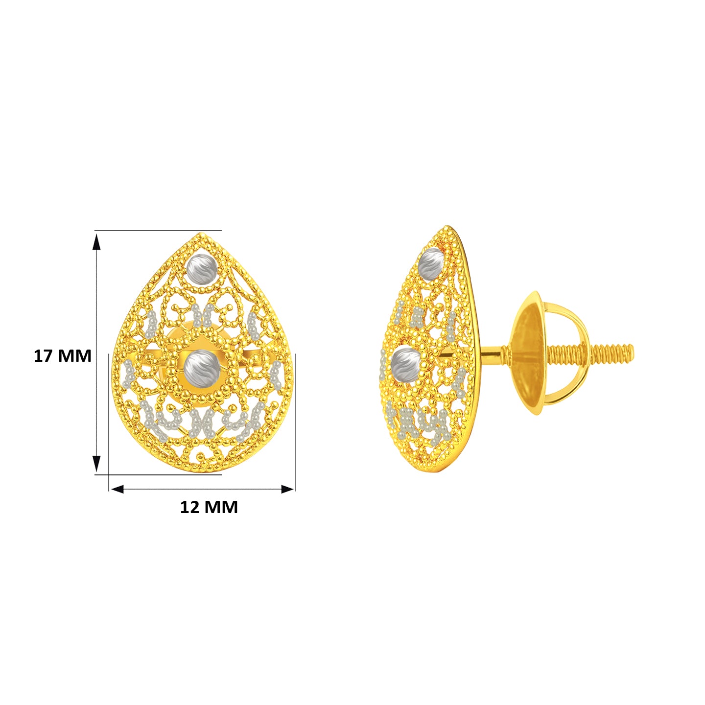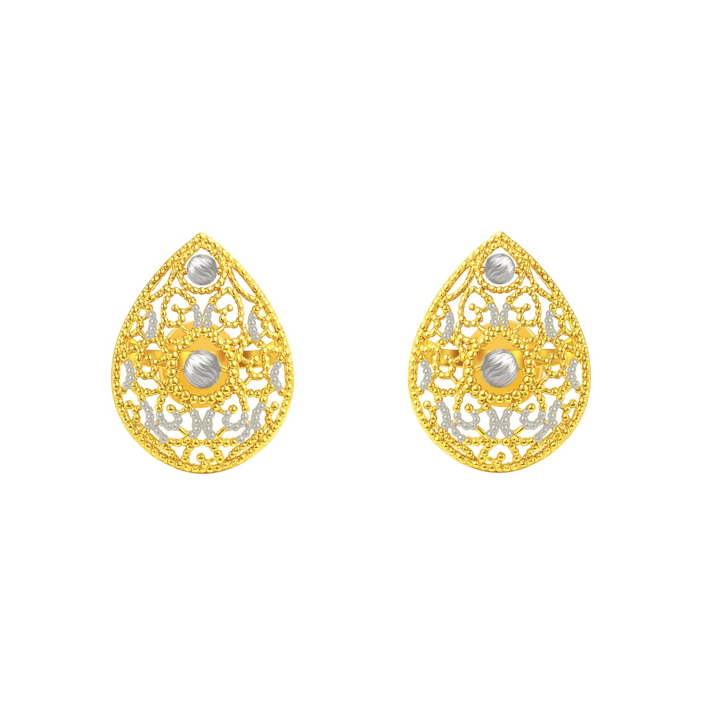 22k Two Tone Antique Earrings measuring 17mm length x 12mm width. Total gold weight is approximately 2.86g.