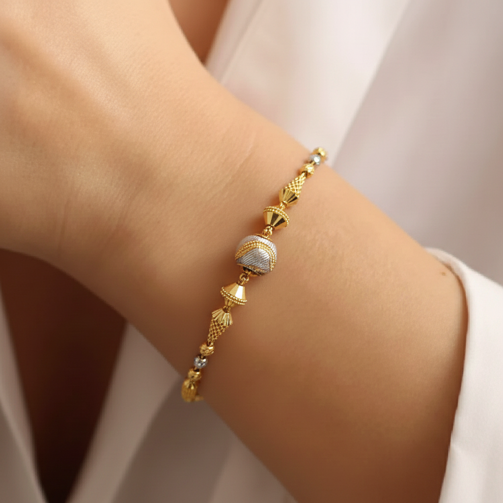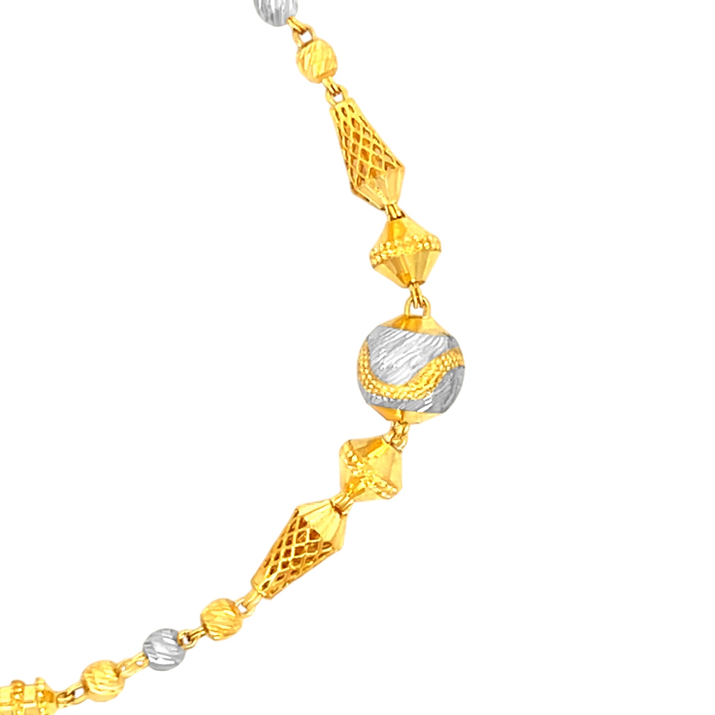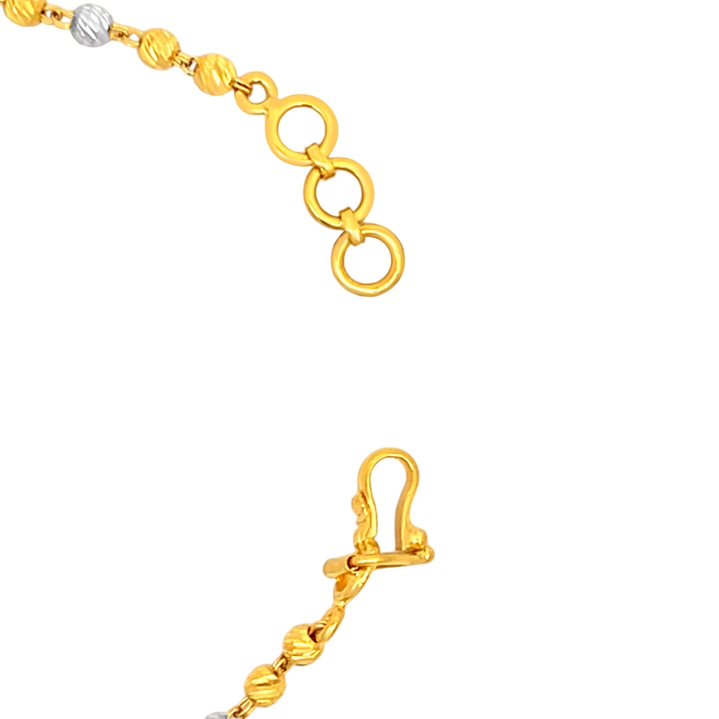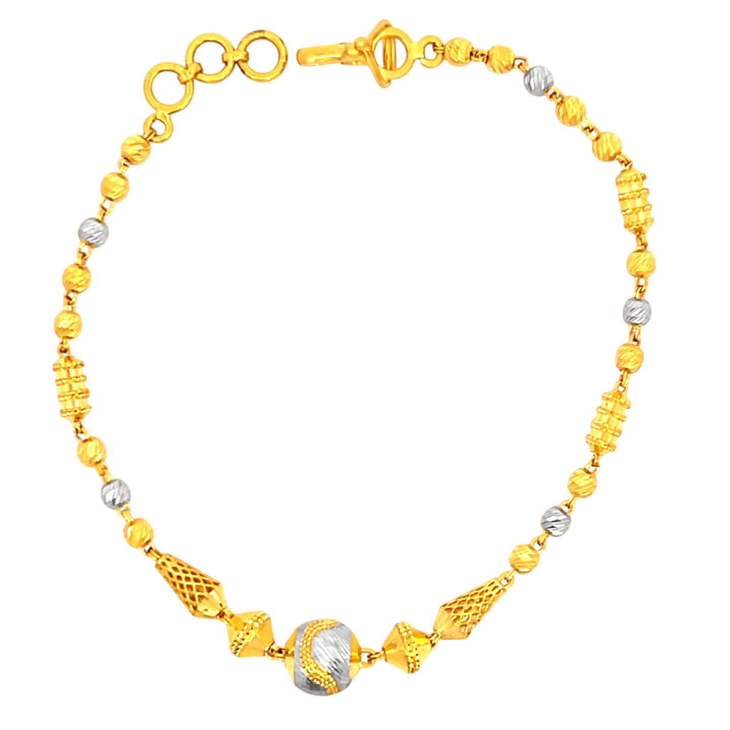 22K Two Tone Gold Ball-Bead Bracelets measuring 7 inch length. Total gold weight is approximately 6.96g.