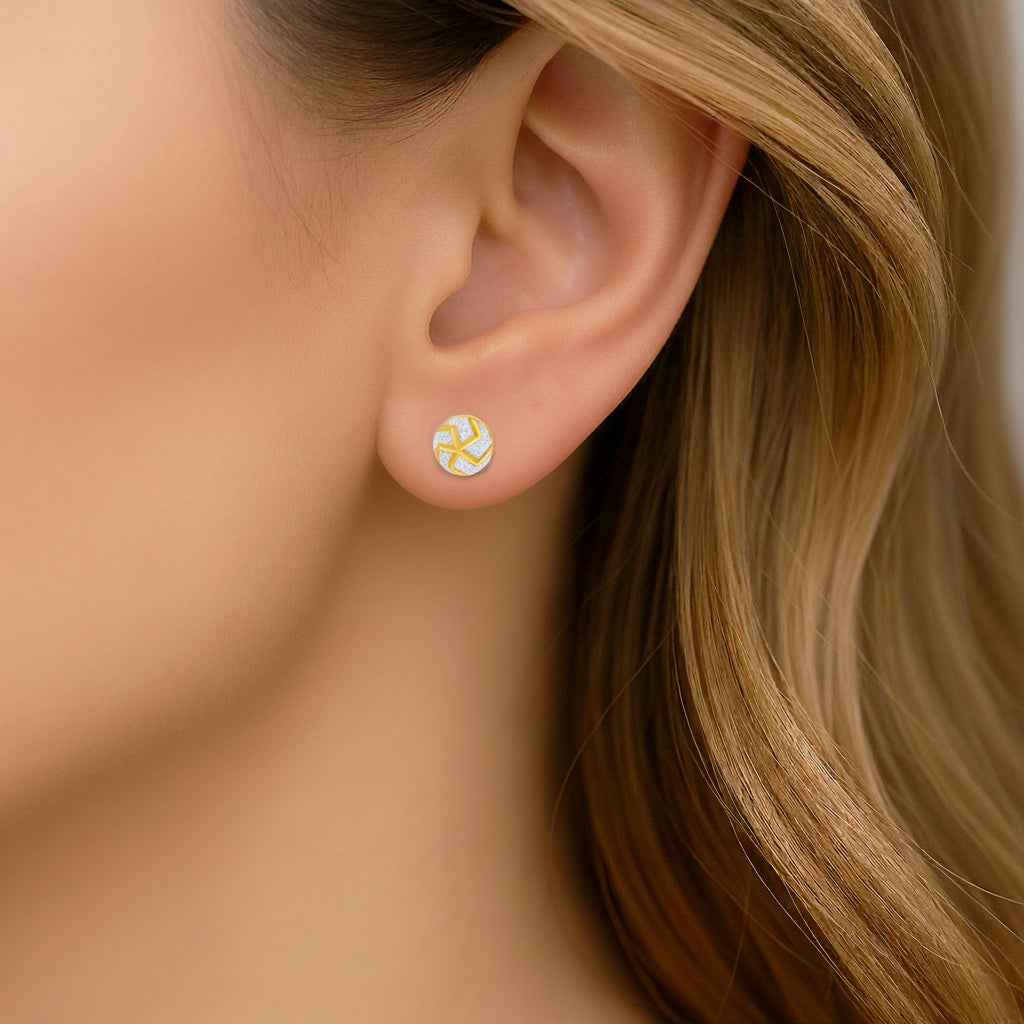 22k Two Tone Ball-Bead Earrings measuring 6mm length x 6mm width. Total gold weight is approximately 1.75g.