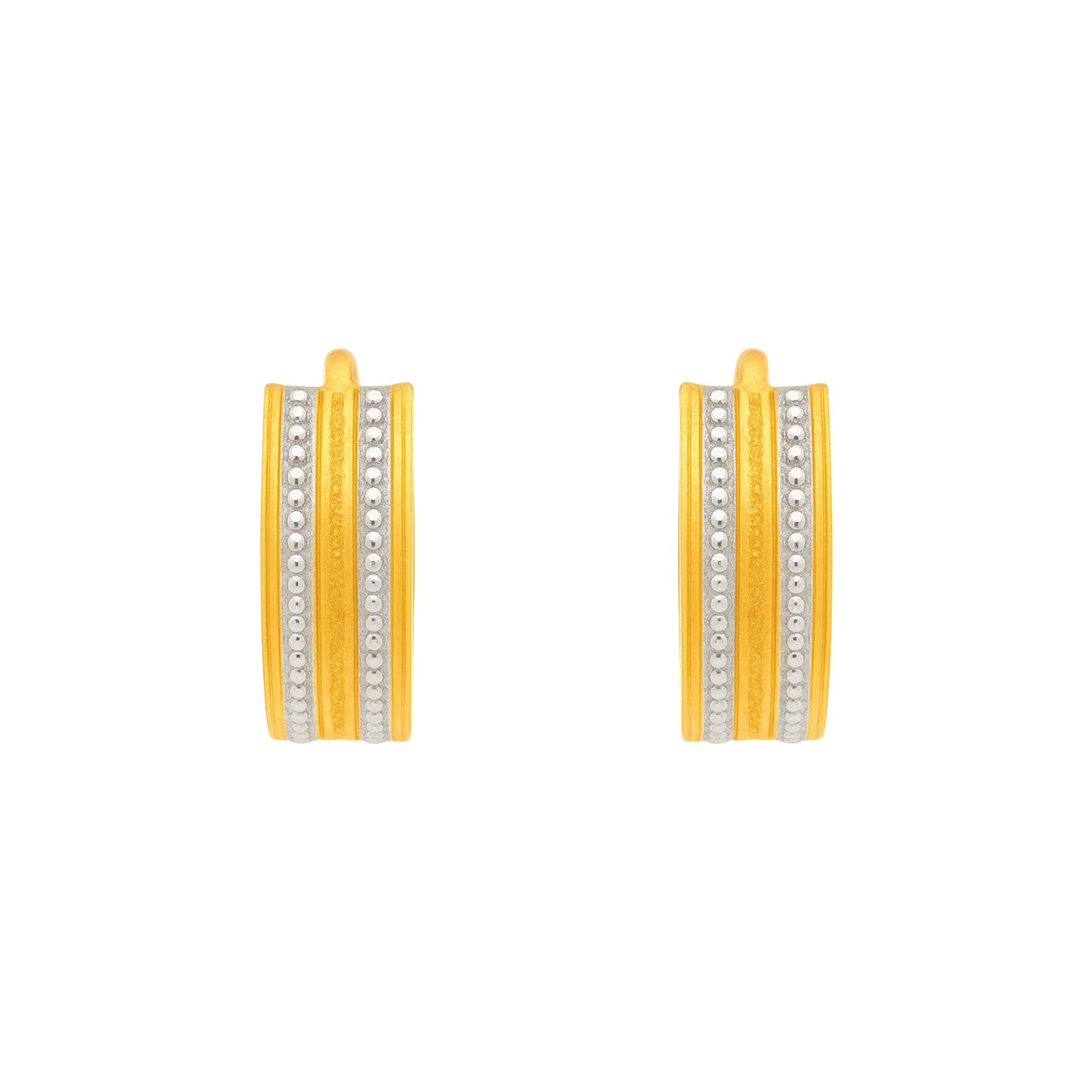 22k Two Tone Gold Extra Small U-Shaped Gleaming Earrings measuring 9mm width x 12mm length. Total gold weight is approximately 3.07g.