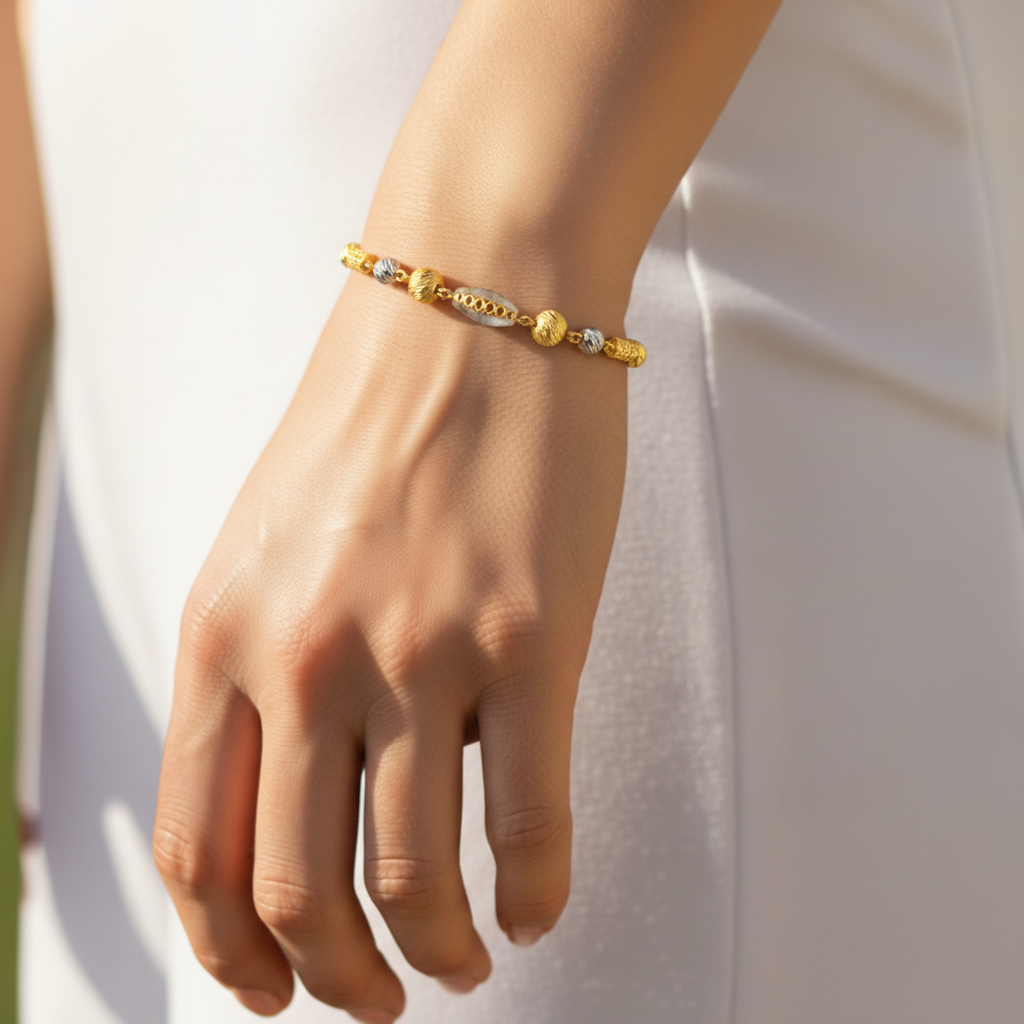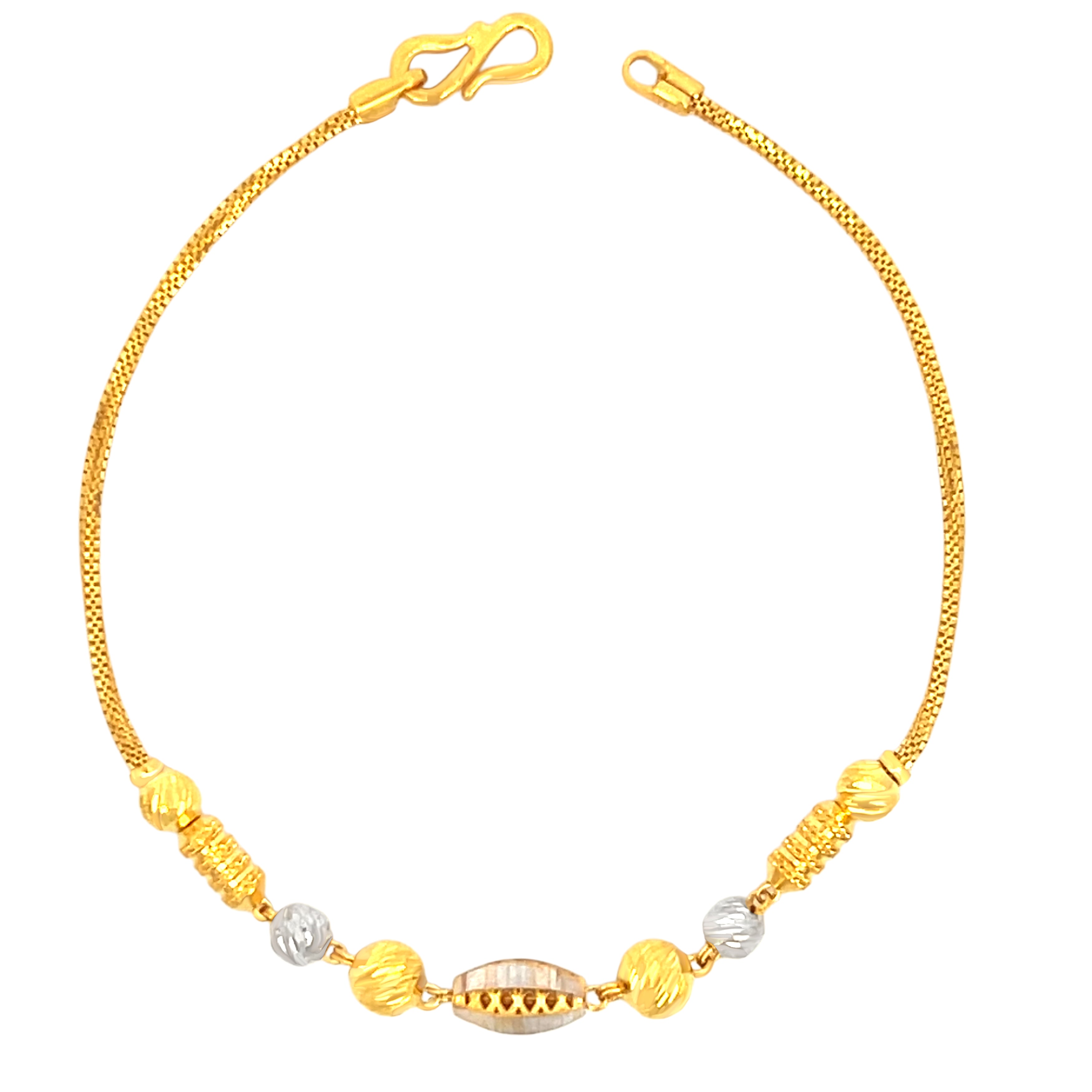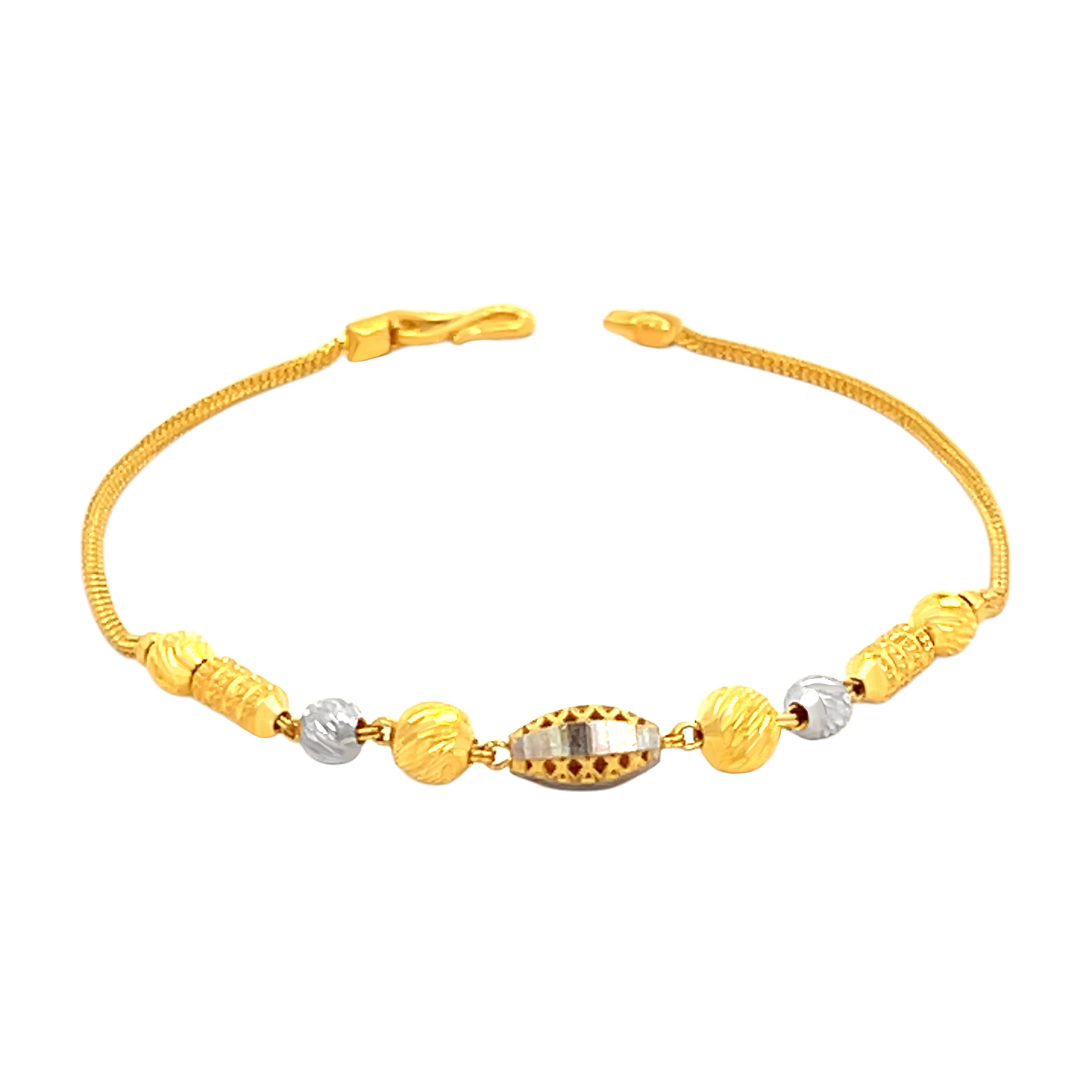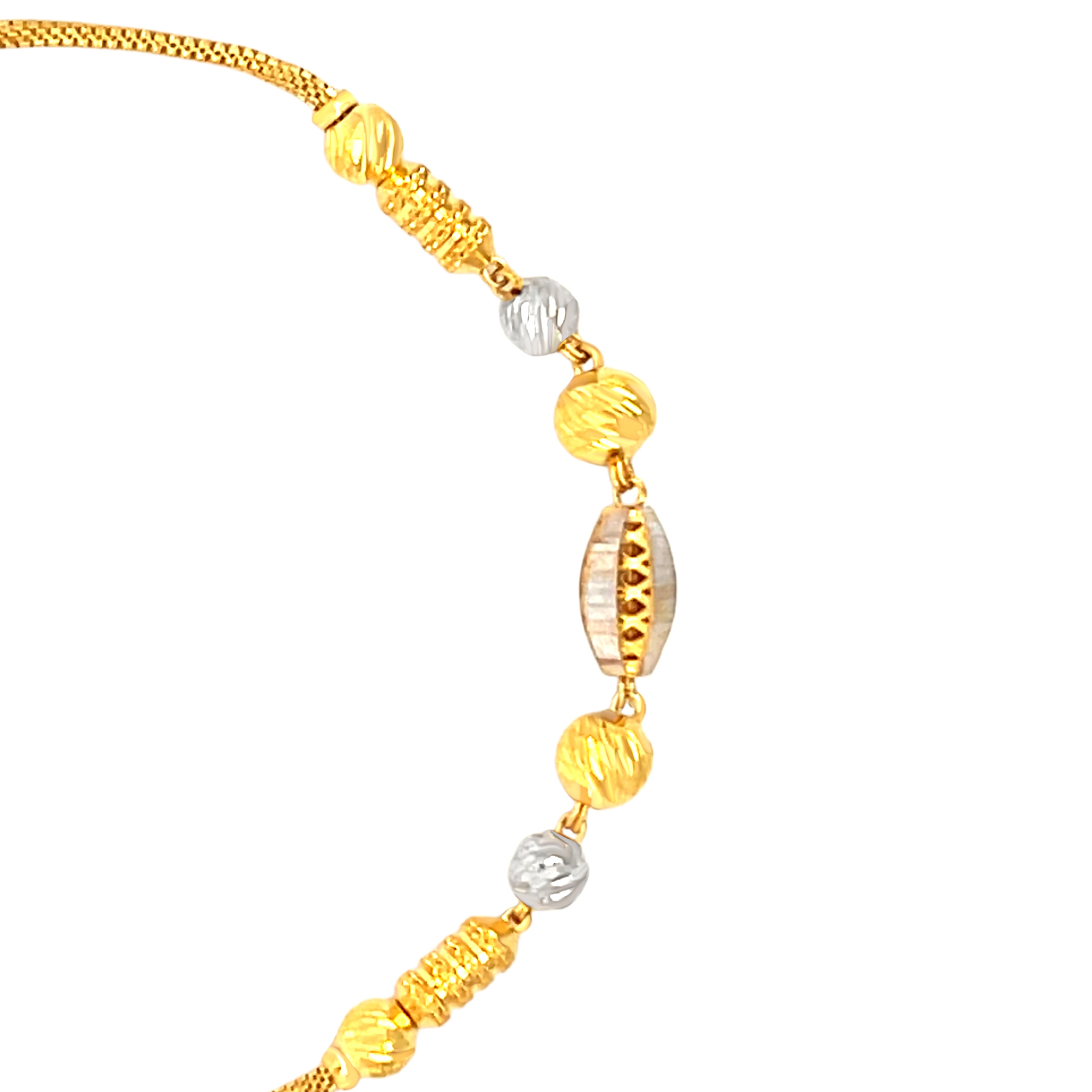 22K Two Tone Gold Fancy Ball-Bead Bracelets measuring 7 inch length. Total gold weight is approximately 4.82g.