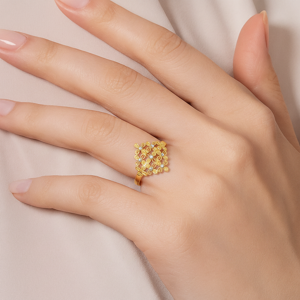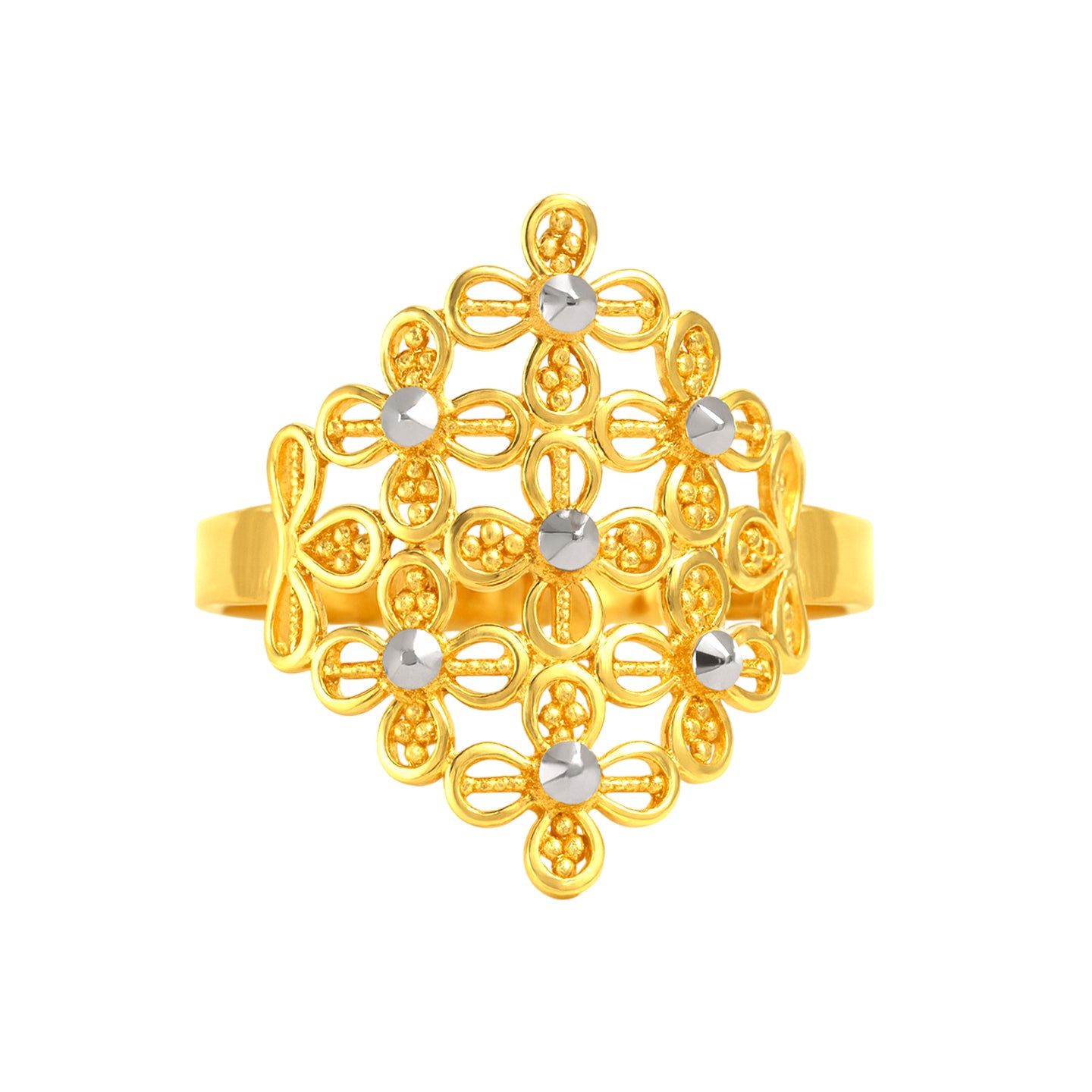 22k Two Tone Gold Filigree Ring measuring 7.5. Total gold weight is approximately 2.95g.