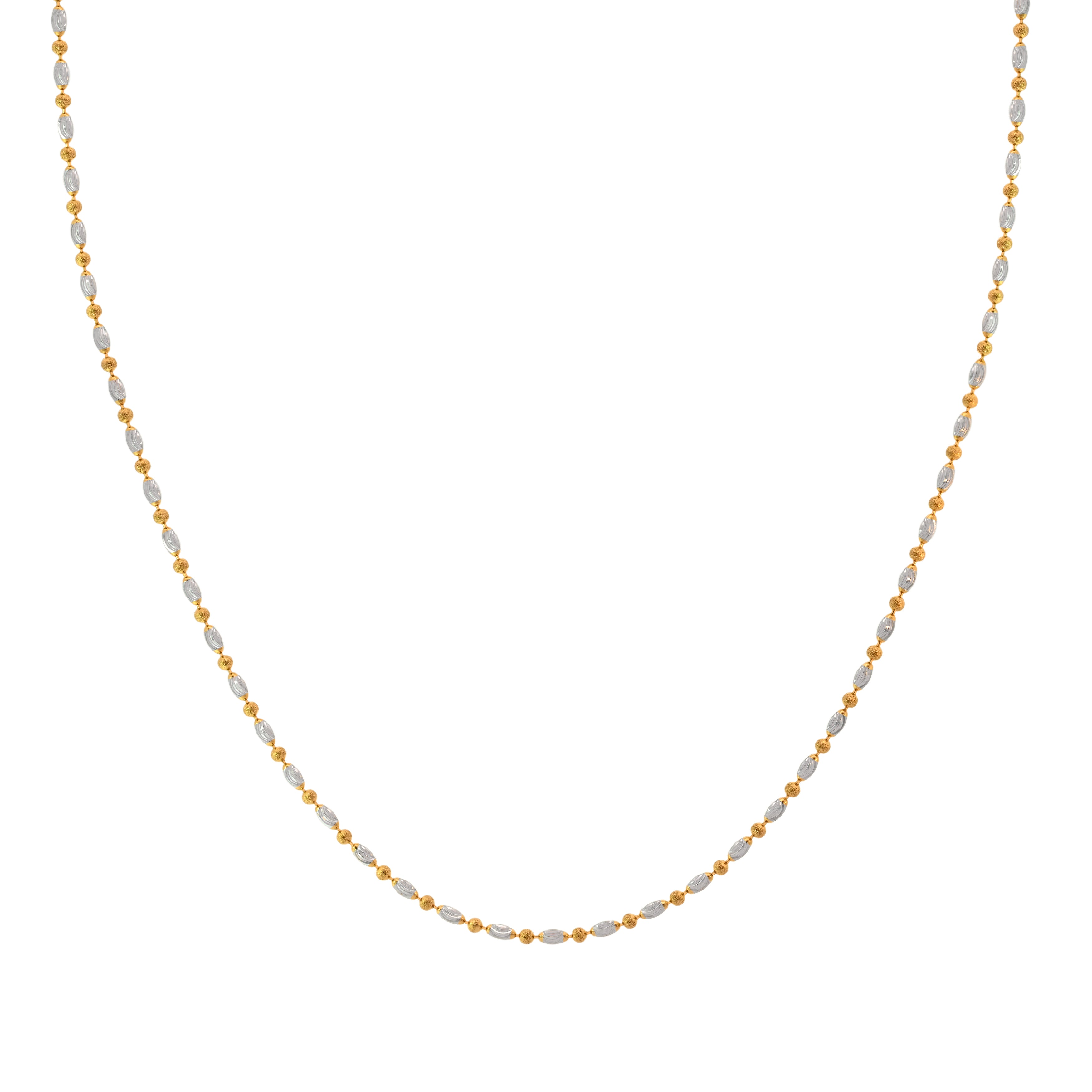 22K Two Tone Gold Round-Oval Medium Ball Bead measuring 2mm width x 16 inch length. Total gold weight is approximately 7.71g.