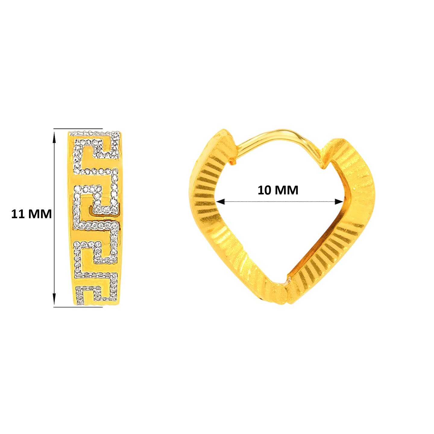 22k Two Tone Gold Small Exquisite Heart Earrings measuring 10mm width x 11mm length. Total gold weight is approximately 2.79g.