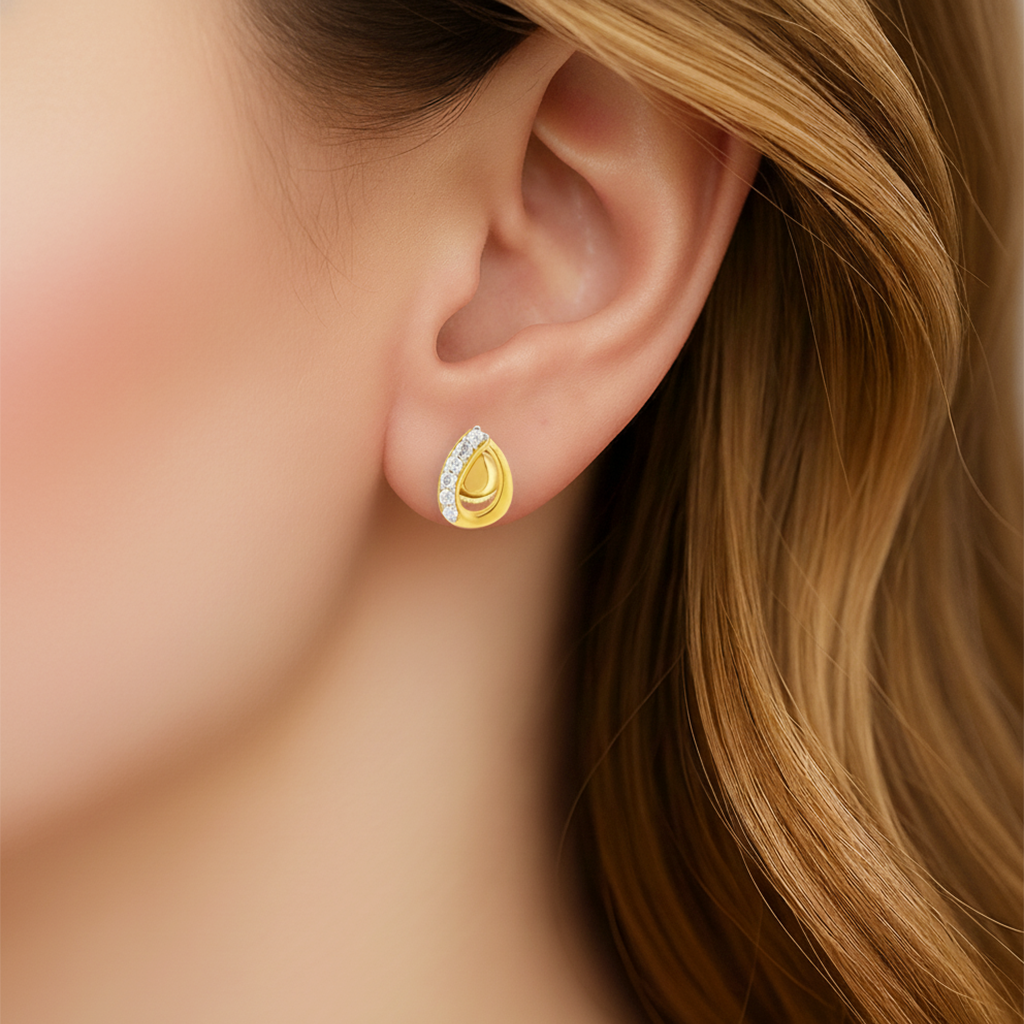 22k Yellow Cubic Zirconia Stud Fancy Earrings in size . Total gold weight is approximately 1.97g