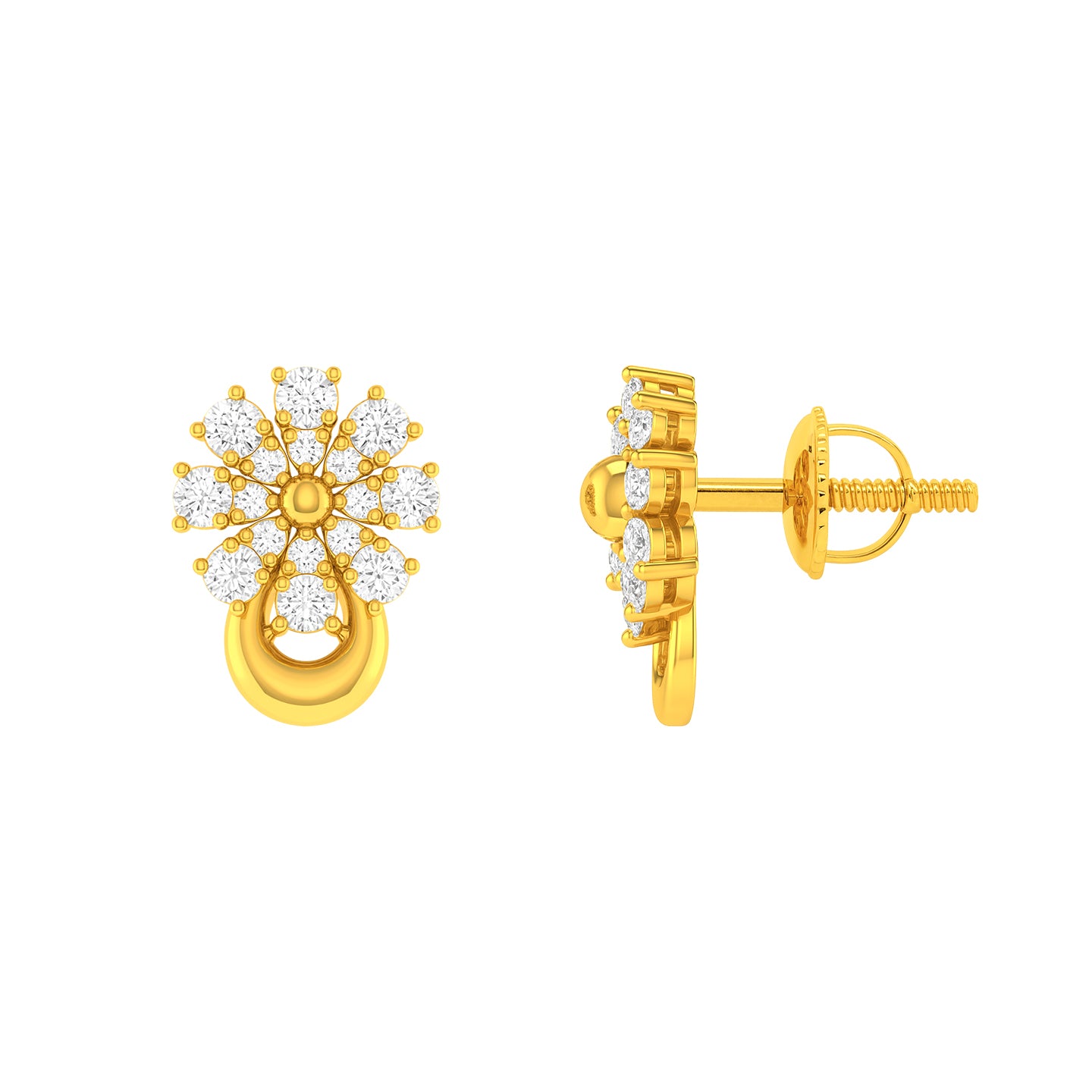 22k Yellow Cubic Zirconia Studs Earrings in size . Total gold weight is approximately 2.32g