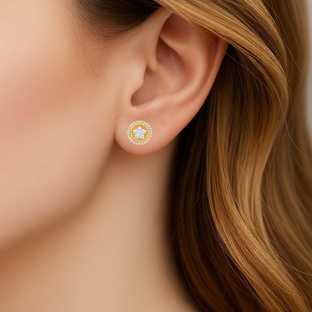 22k Yellow Cubic Zirconia Studs Fancy Earrings in size . Total gold weight is approximately 4.53g