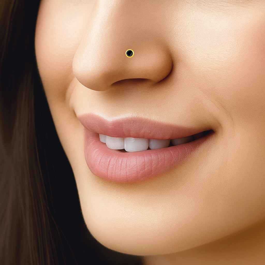22K Yellow Gold Assorted Small Black Nose Pin with Wire . Total gold weight is approximately 0.09g. For health and safety reasons, nose pins and nose rings CANNOT BE exchanged or returned once purchased.
