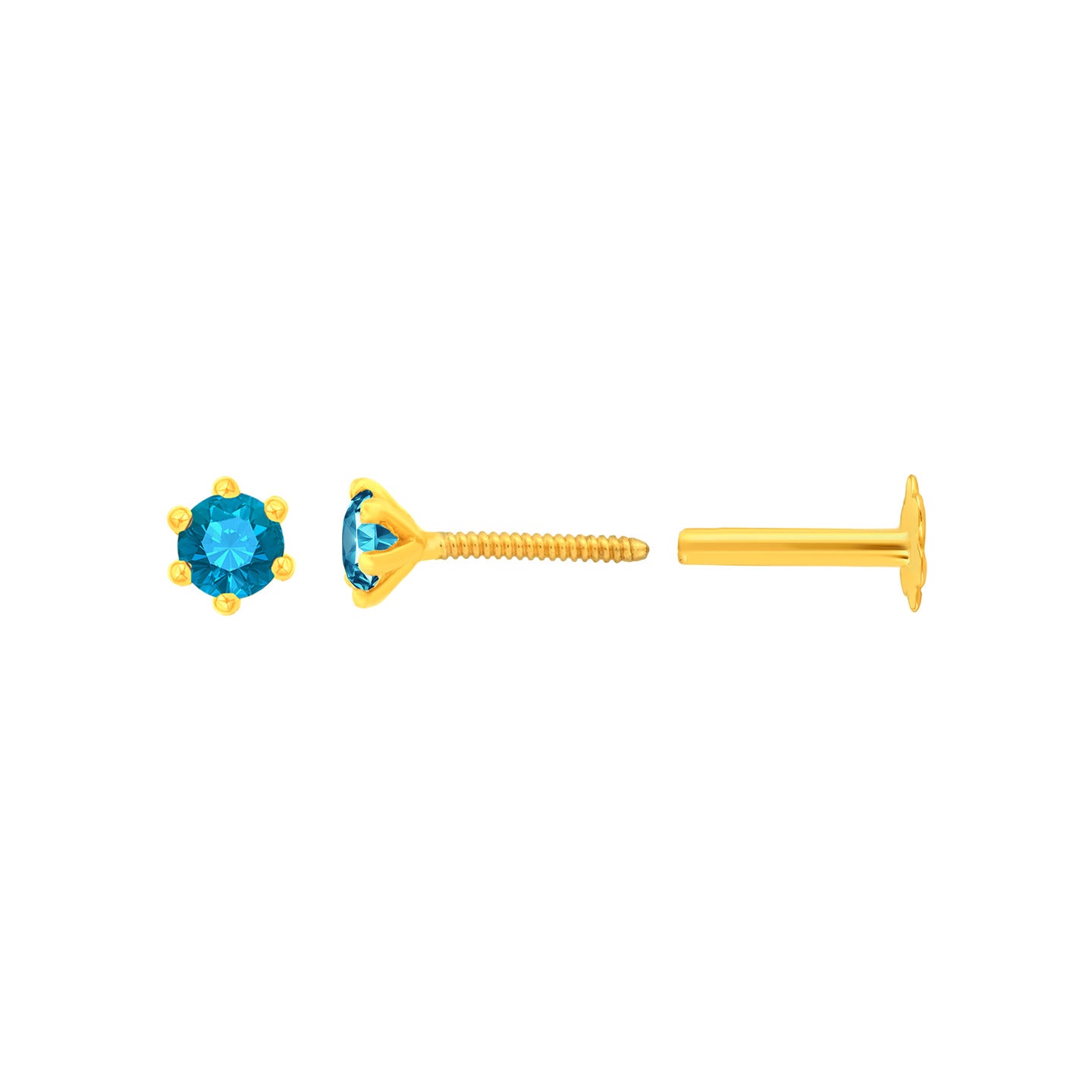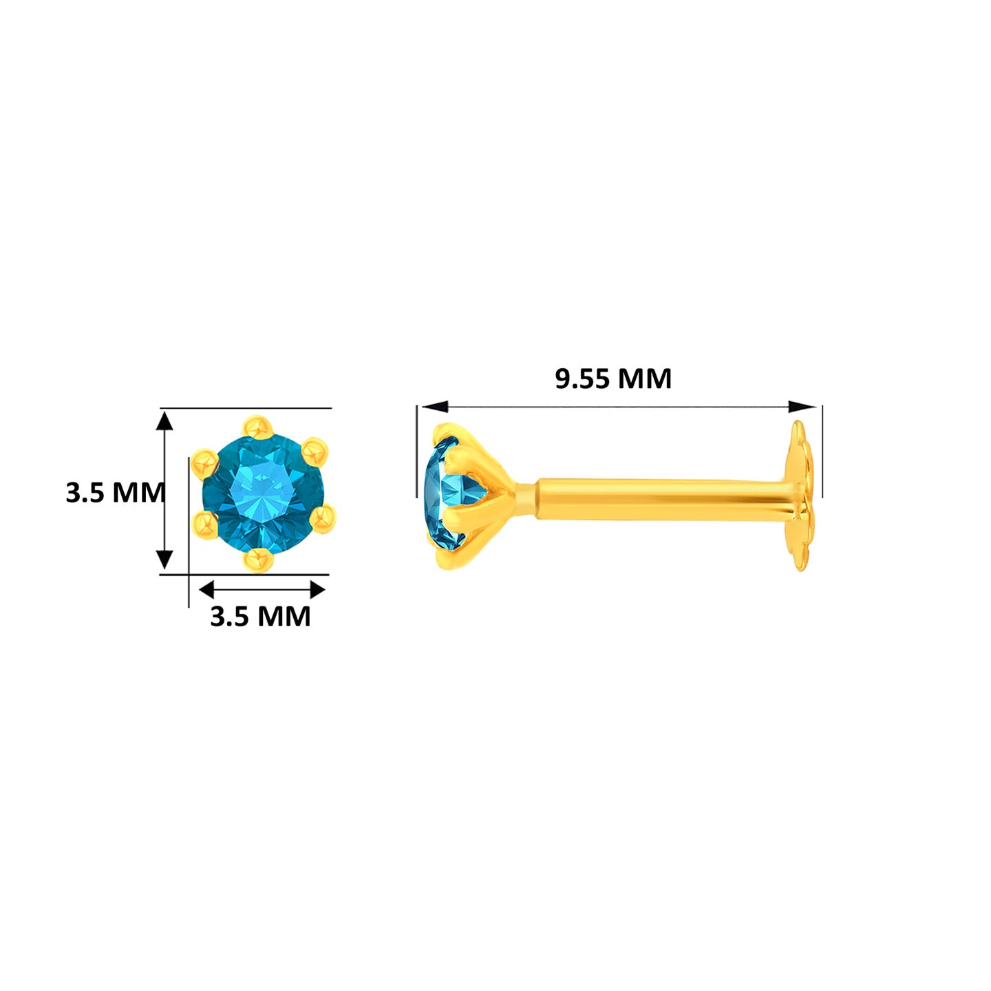 22K Yellow Gold Assorted Small Blue Nose Pin with Screwback measuring 3.5mm width. Total gold weight is approximately 0.21g. For health and safety reasons, nose pins and nose rings CANNOT BE exchanged or returned once purchased.