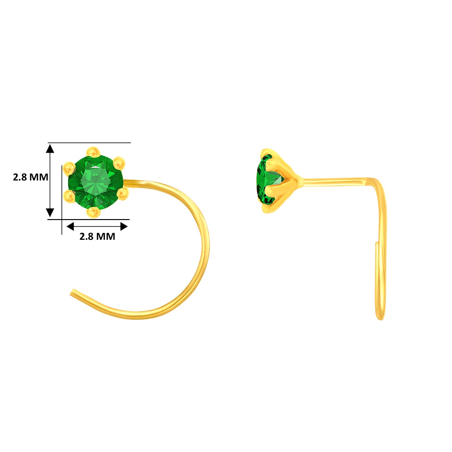 22K Yellow Gold Assorted Small Green Nose Pin with Wire . Total gold weight is approximately 0.13g. For health and safety reasons, nose pins and nose rings CANNOT BE exchanged or returned once purchased.