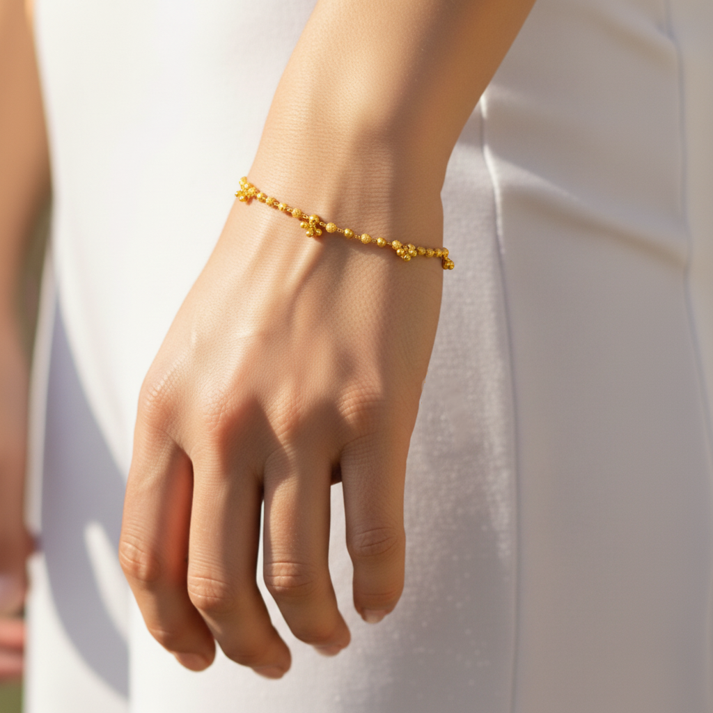 22k Yellow Gold Ball-Bead Bracelet measuring 3mm thickness x 7 inch length.