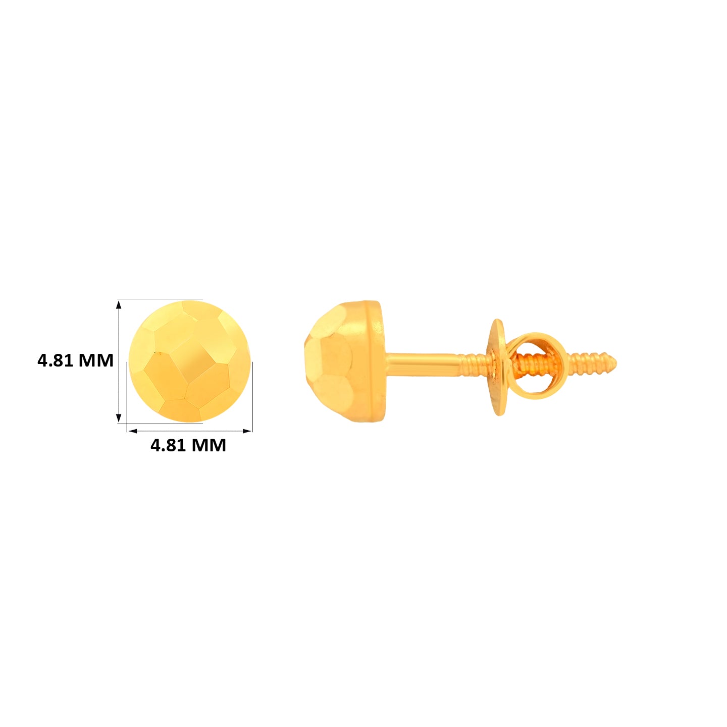 22k Yellow Gold Ball-Bead Earrings measuring 4.81mm length x 4.81mm width. Total gold weight is approximately 1.268g.