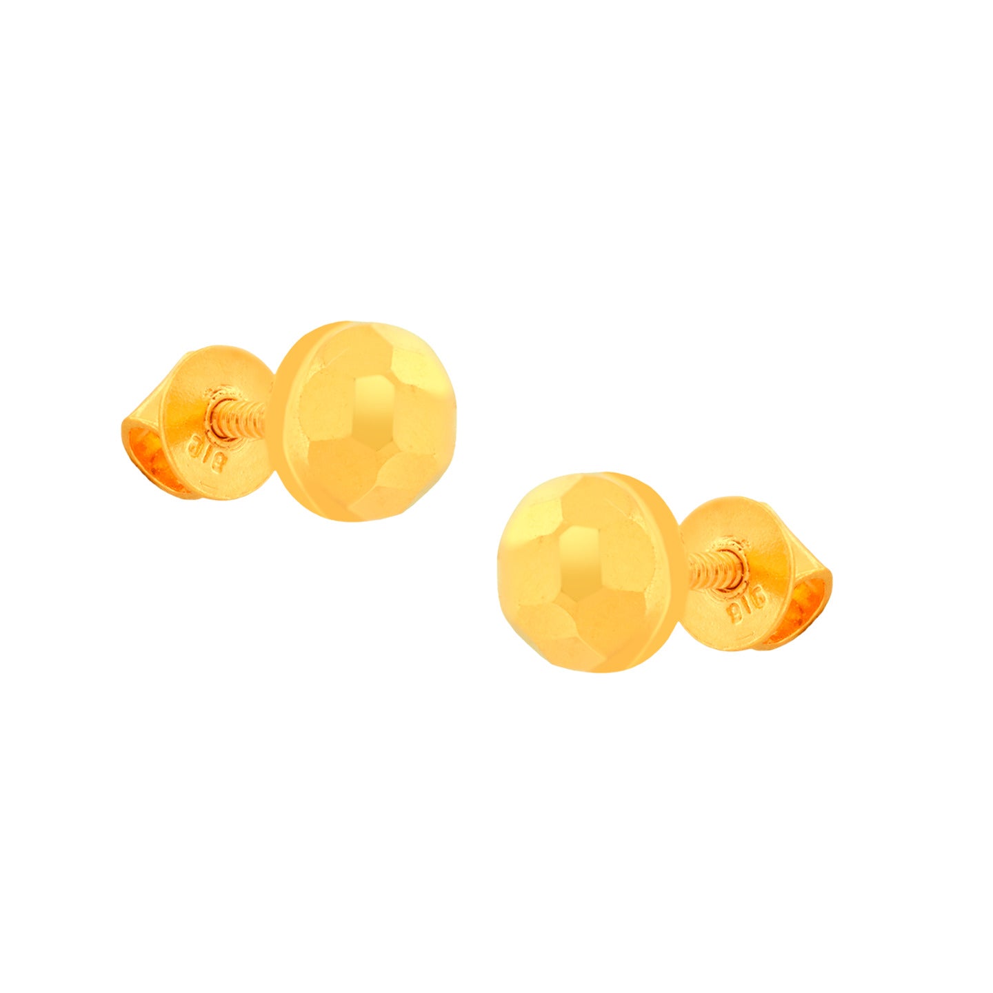 22k Yellow Gold Ball-Bead Earrings measuring 5.33mm length x 5.33mm width. Total gold weight is approximately 1.468g.