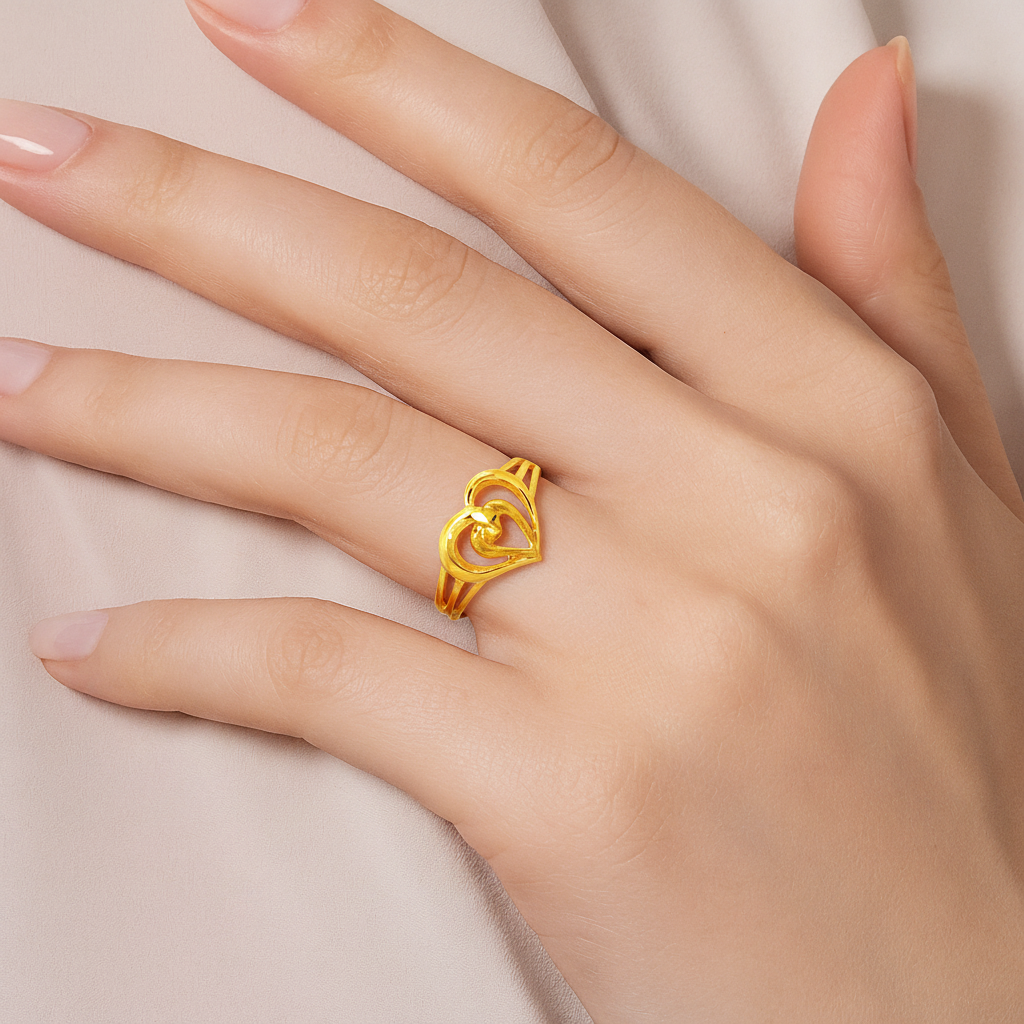 22k Yellow Gold Cocktail Fancy Heart Rings in size 6.6. Total gold weight is approximately 2.88g