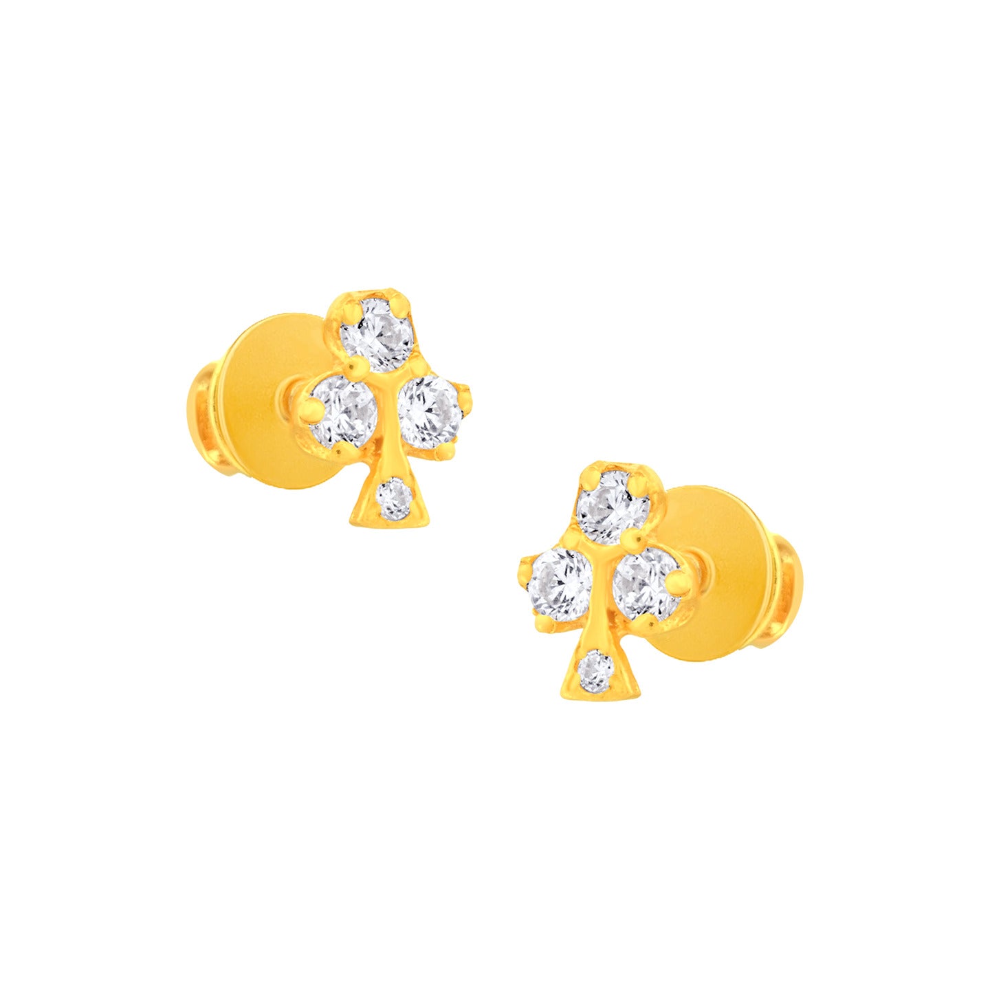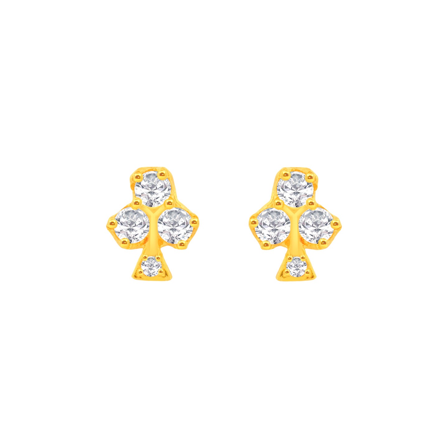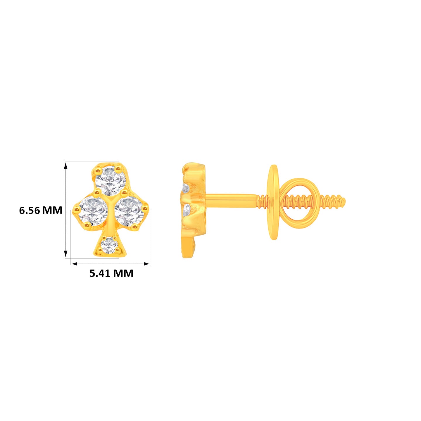 22k Yellow Gold Cubic Zirconia Clover Stud Earrings measuring 6.56mm length x 5.41mm width. Total gold weight is approximately 1.081g.