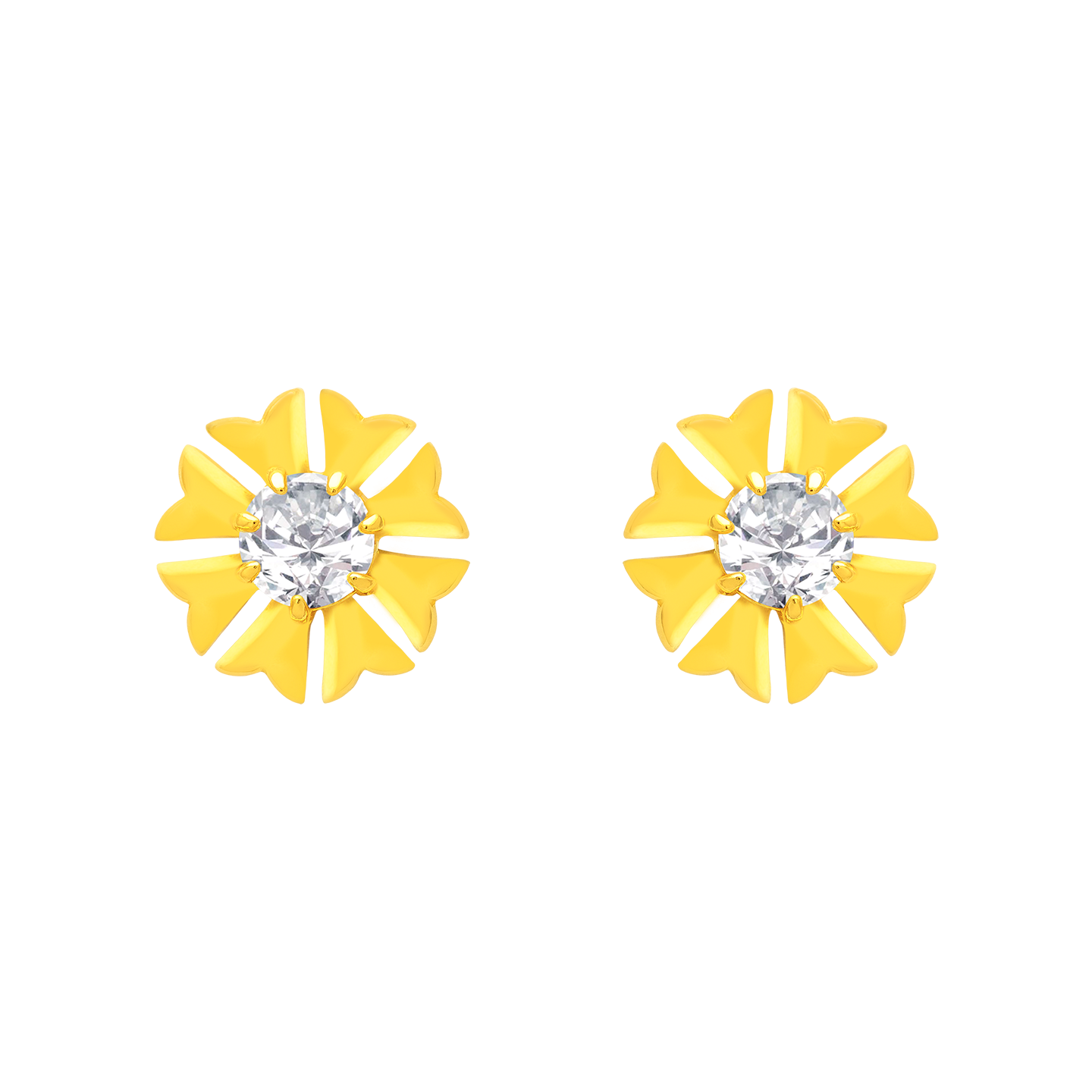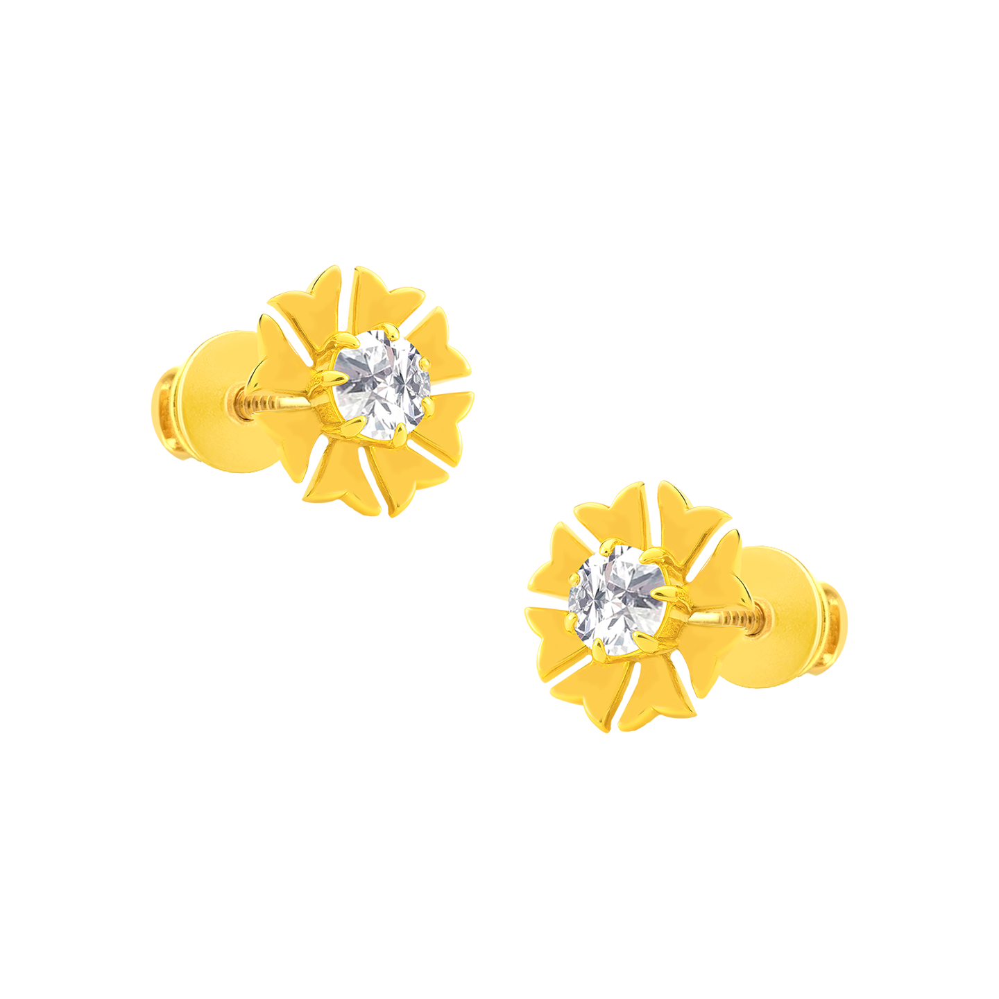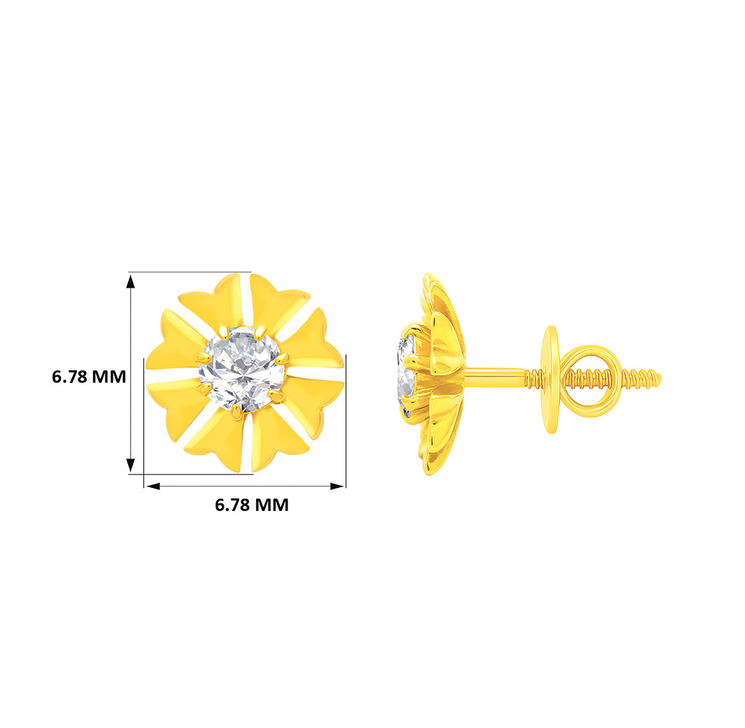 22k Yellow Gold Cubic Zirconia Floral Stud Earrings measuring 6.7mm length x 6.7mm width. Total gold weight is approximately 0.777g.
