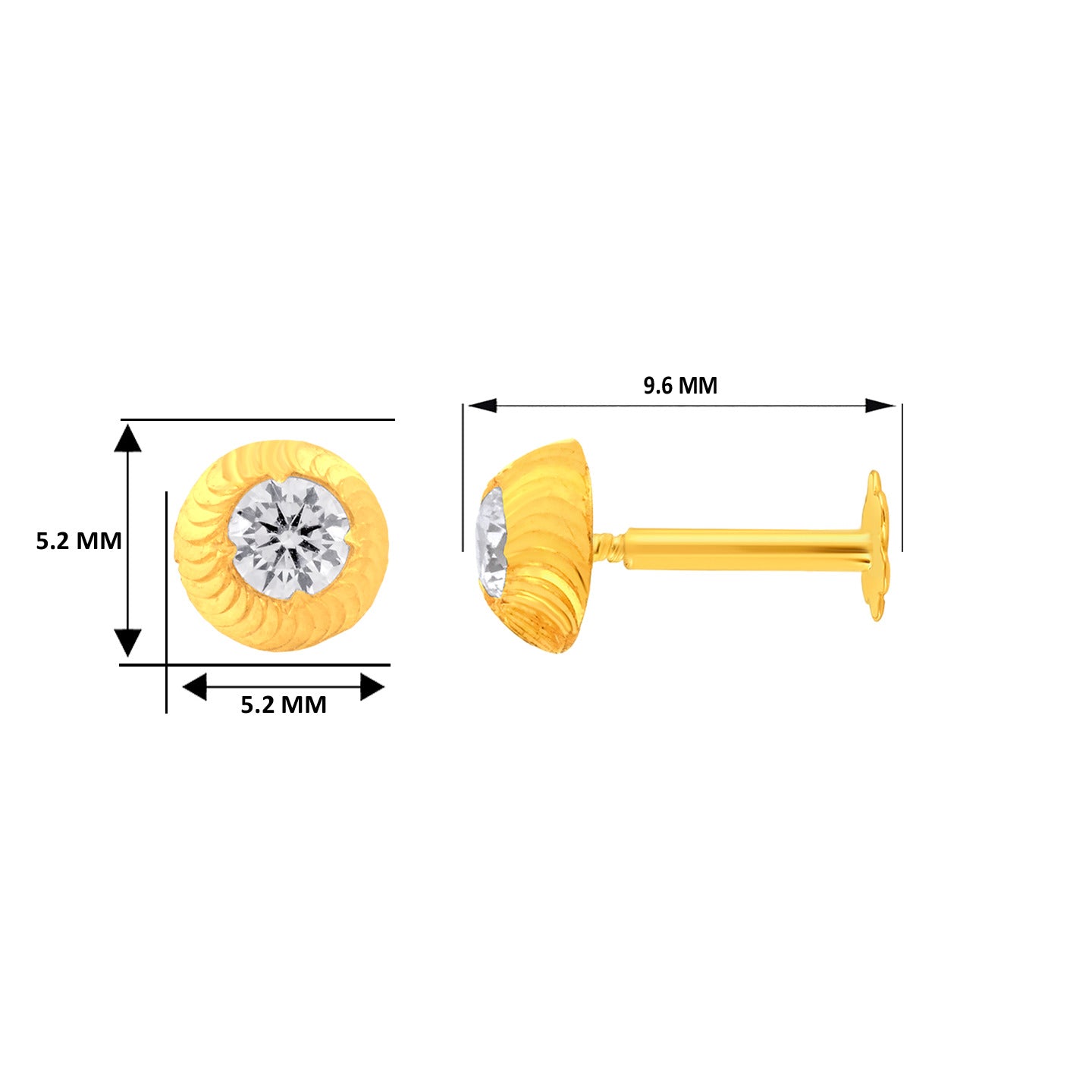 22K Yellow Gold Cubic Zirconia Medium Classic Nose Pin with Screwback . Total gold weight is approximately 0.25g. For health and safety reasons, nose pins and nose rings CANNOT BE exchanged or returned once purchased.