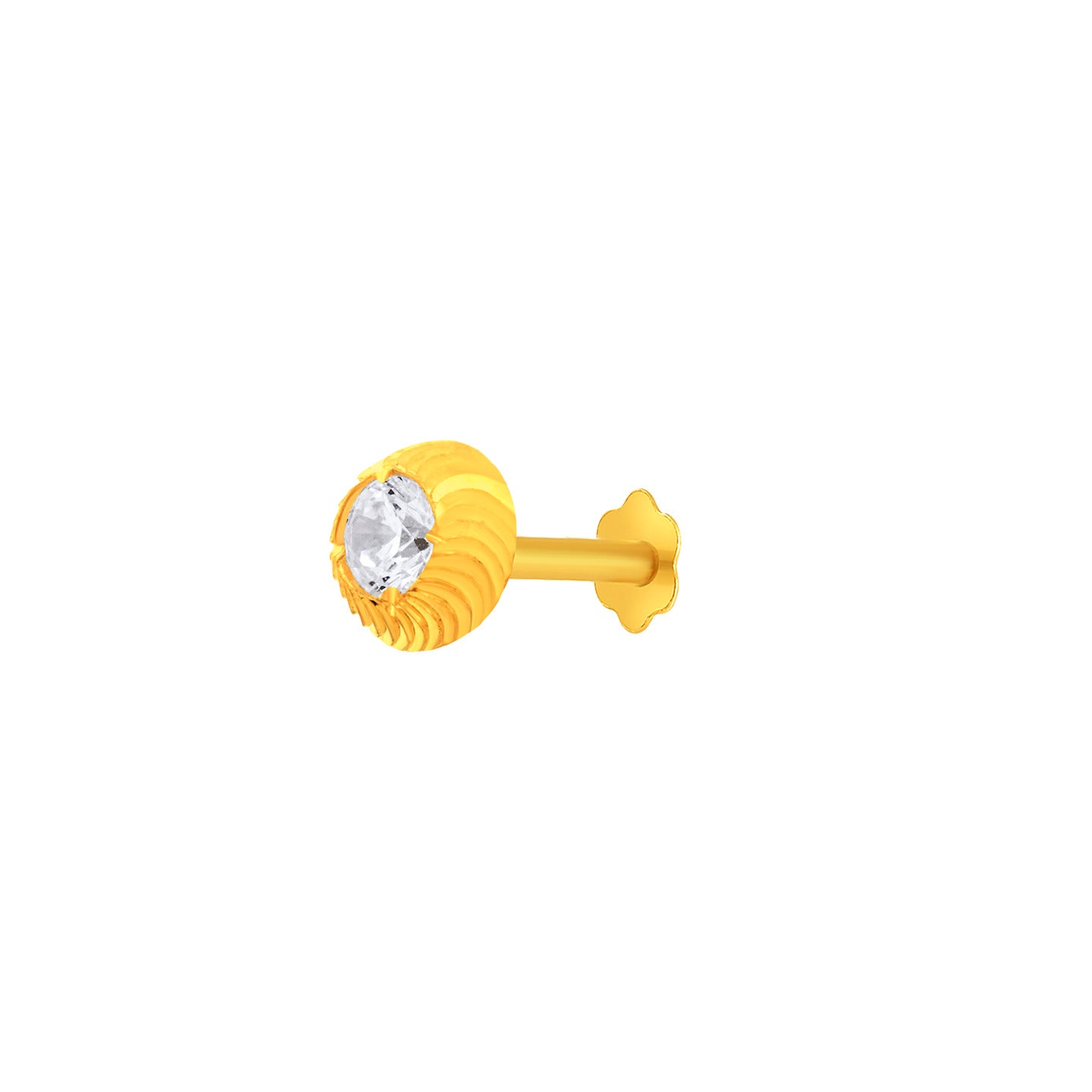 22K Yellow Gold Cubic Zirconia Small Classic Nose Pin with Screwback . Total gold weight is approximately 0.22g. For health and safety reasons, nose pins and nose rings CANNOT BE exchanged or returned once purchased.