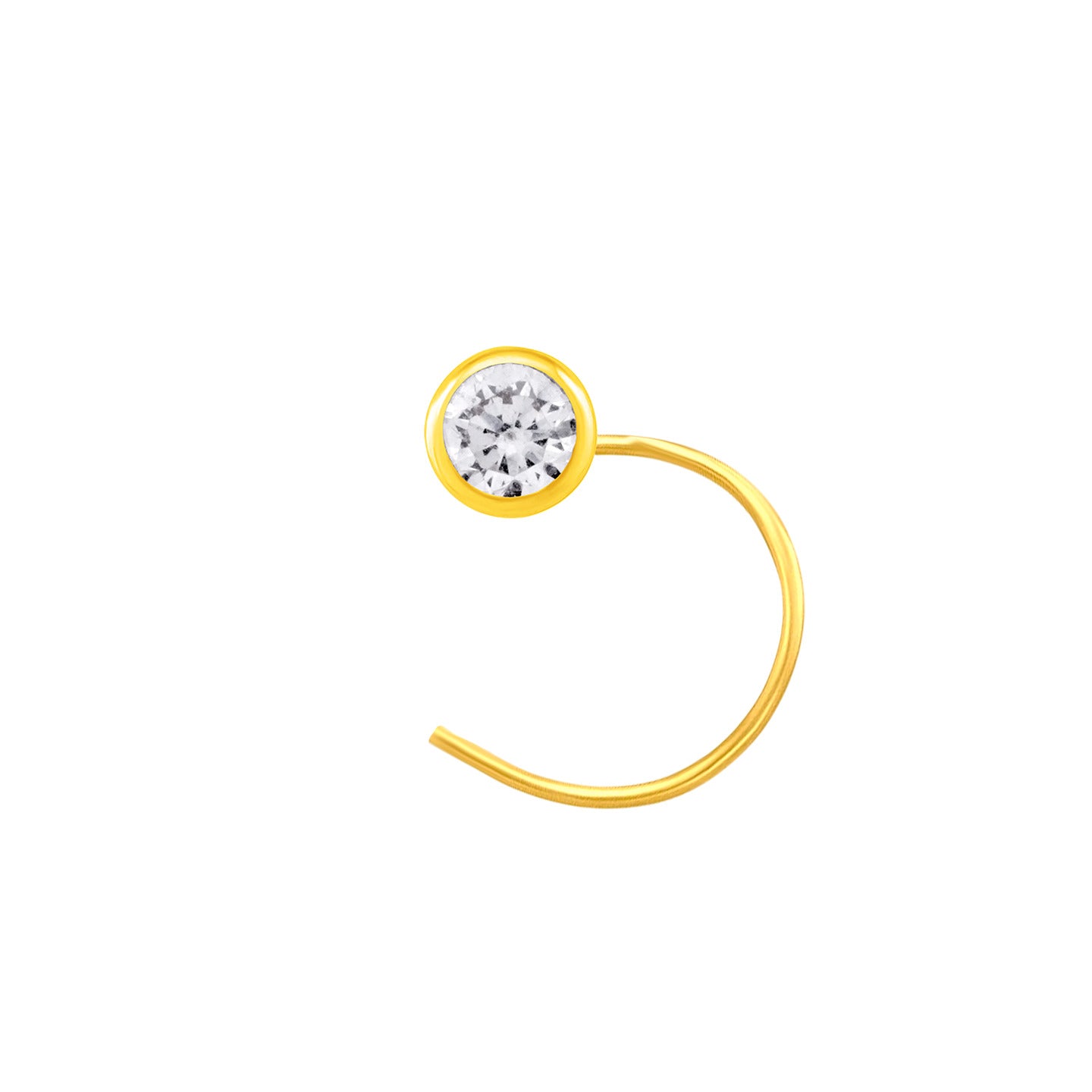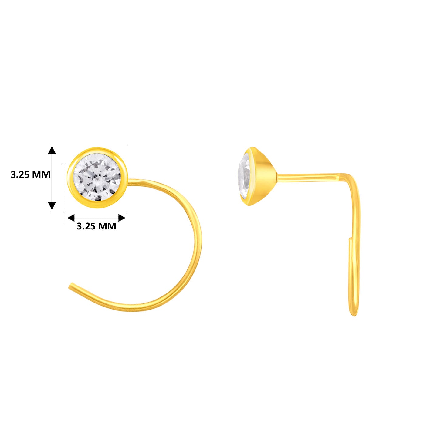 22K Yellow Gold Cubic Zirconia Small Classic Nose Pin with Wire measuring 3.25mm width. Total gold weight is approximately 0.14g. For health and safety reasons, nose pins and nose rings CANNOT BE exchanged or returned once purchased.