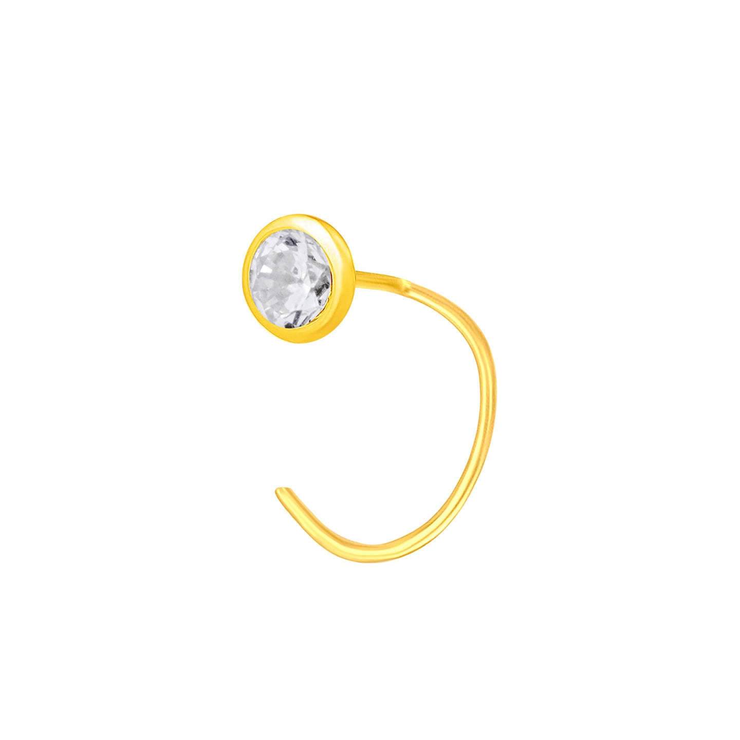 22K Yellow Gold Cubic Zirconia Small Classic Nose Pin with Wire measuring 3.5mm width. Total gold weight is approximately 0.15g. For health and safety reasons, nose pins and nose rings CANNOT BE exchanged or returned once purchased.