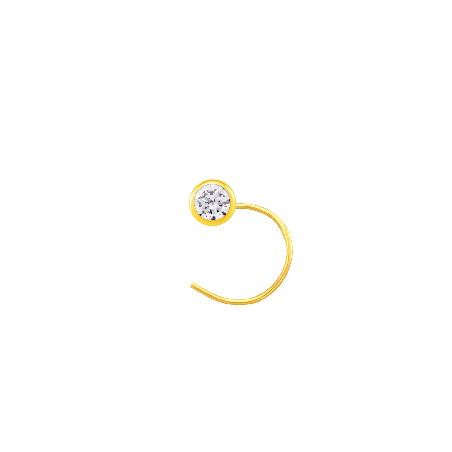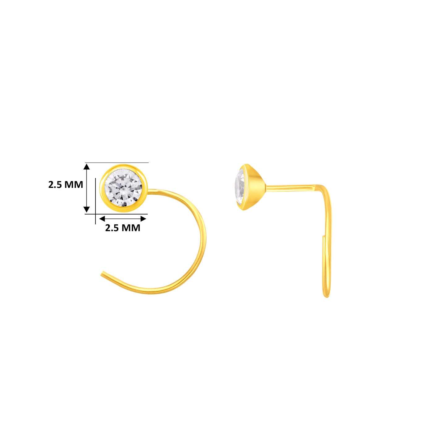 22K Yellow Gold Cubic Zirconia Small Classic Nose Pin with Wire measuring 2.5mm width. Total gold weight is approximately 0.1g. For health and safety reasons, nose pins and nose rings CANNOT BE exchanged or returned once purchased.