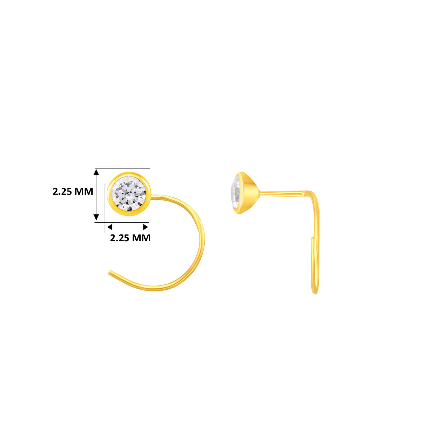 22K Yellow Gold Cubic Zirconia Small Classic Nose Pin with Wire measuring 2.25mm width. Total gold weight is approximately 0.9g. For health and safety reasons, nose pins and nose rings CANNOT BE exchanged or returned once purchased.