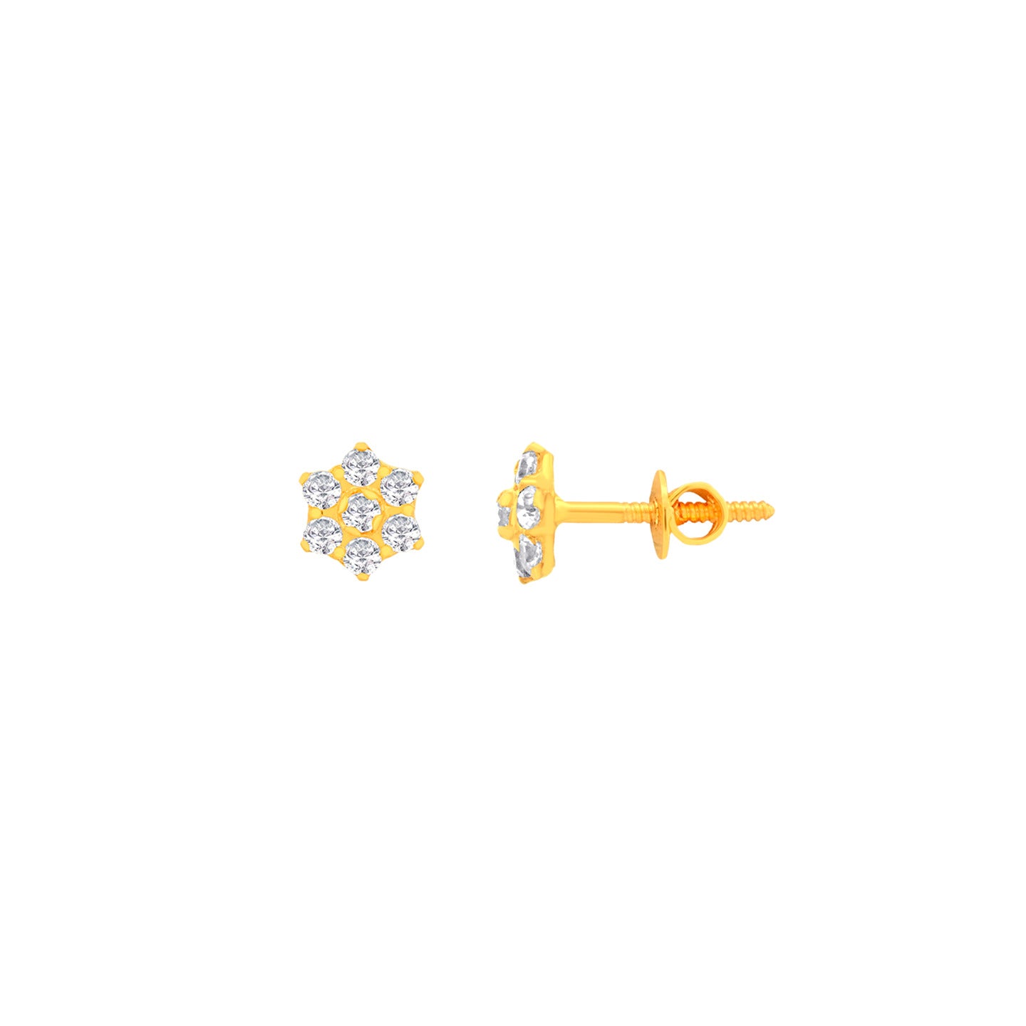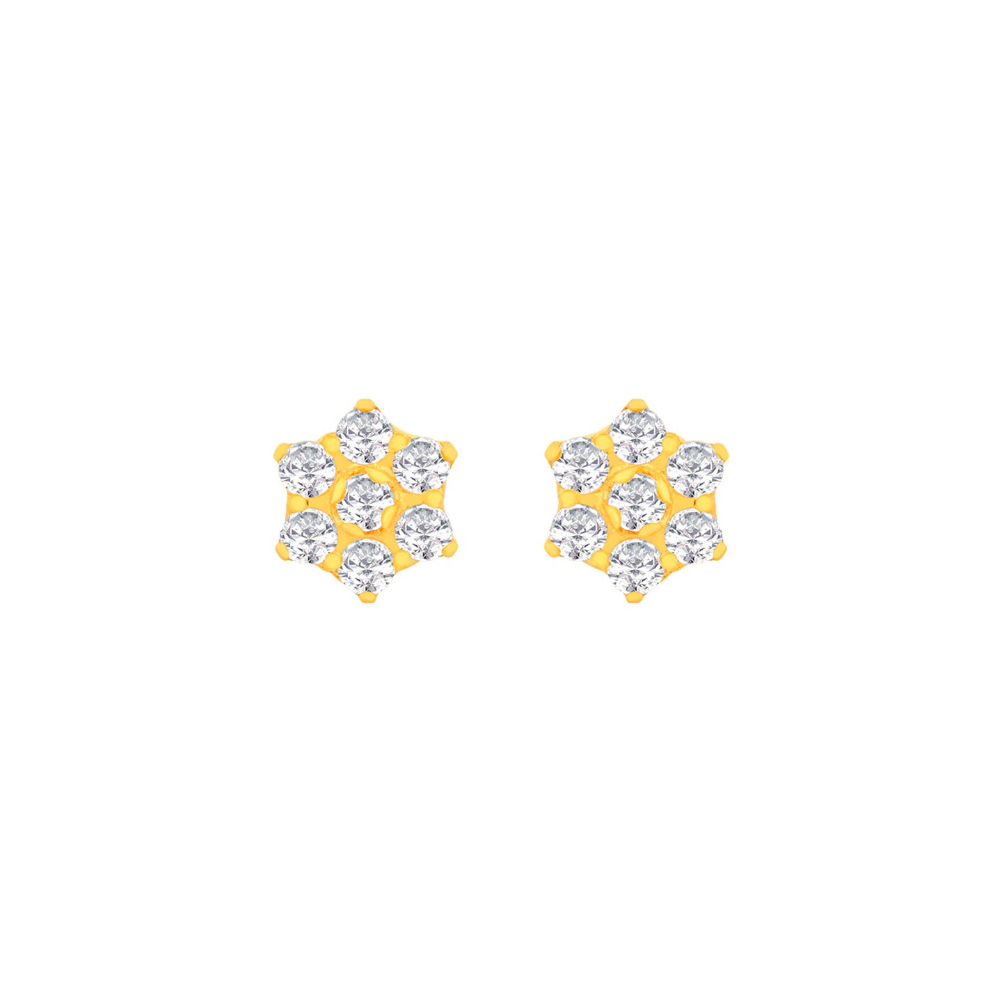 22k Yellow Gold Cubic Zirconia Stud Earrings measuring 5.74mm length x 5.74mm width. Total gold weight is approximately 1.015g.