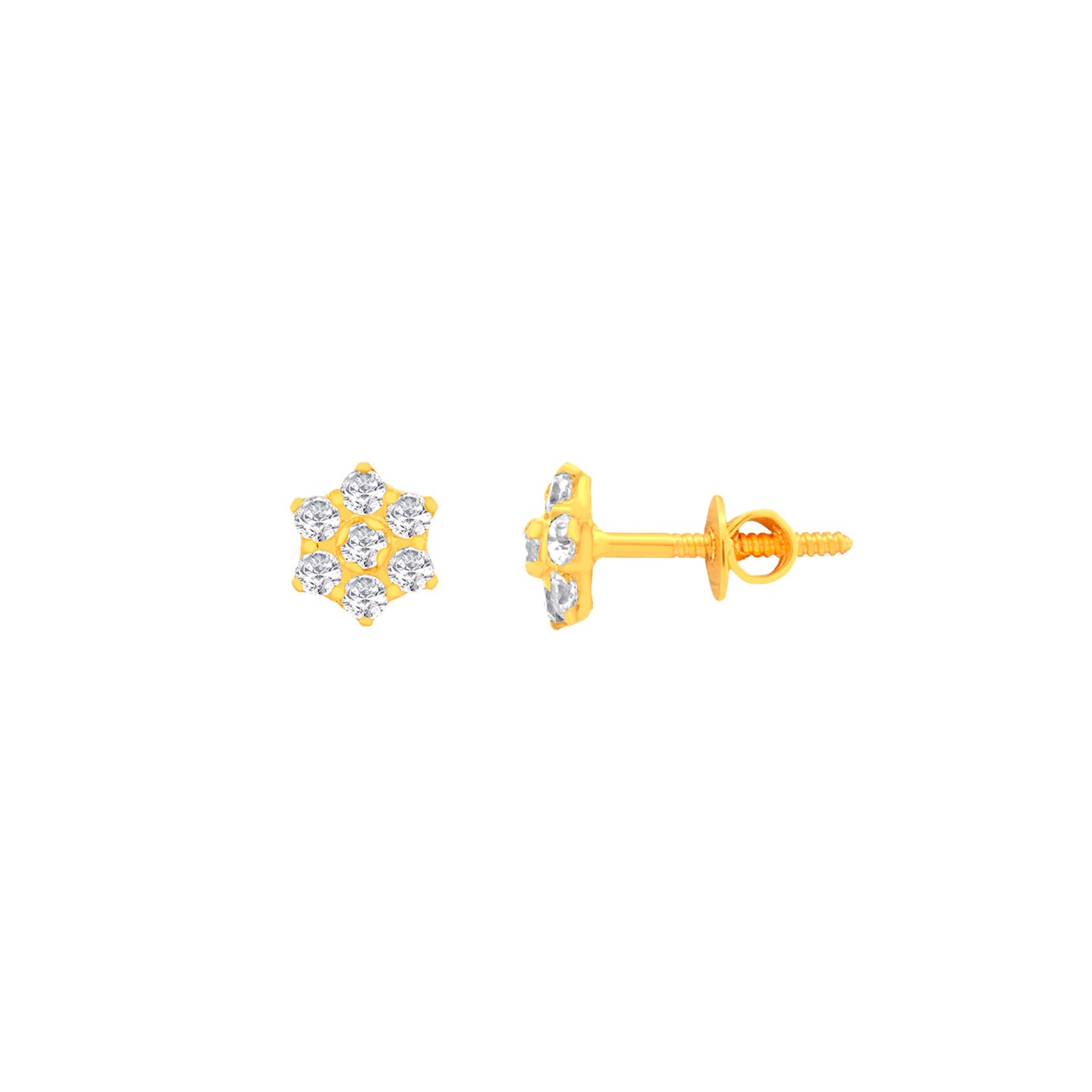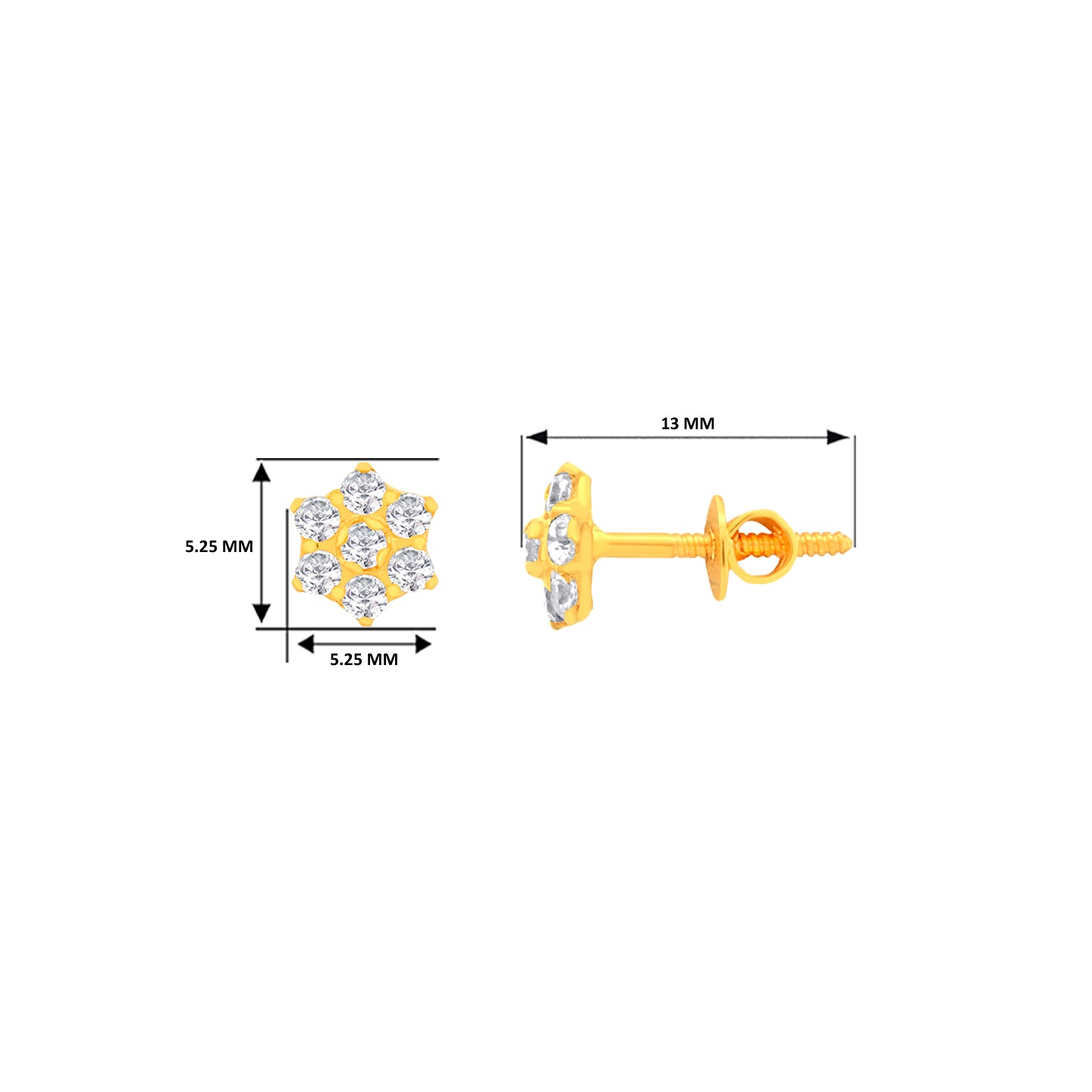 22k Yellow Gold Cubic Zirconia Stud Earrings measuring 5.96mm length x 5.96mm width. Total gold weight is approximately 1.041g.