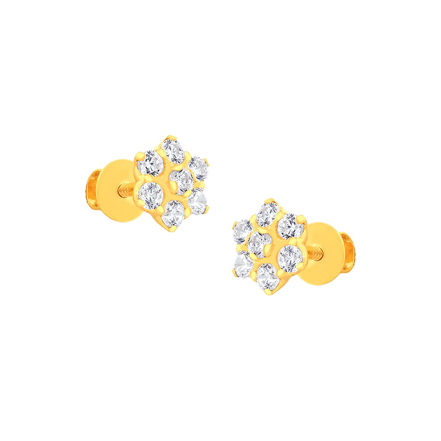 22k Yellow Gold Cubic Zirconia Stud Earrings measuring 6.32mm length x 6.32mm width. Total gold weight is approximately 1.15g.