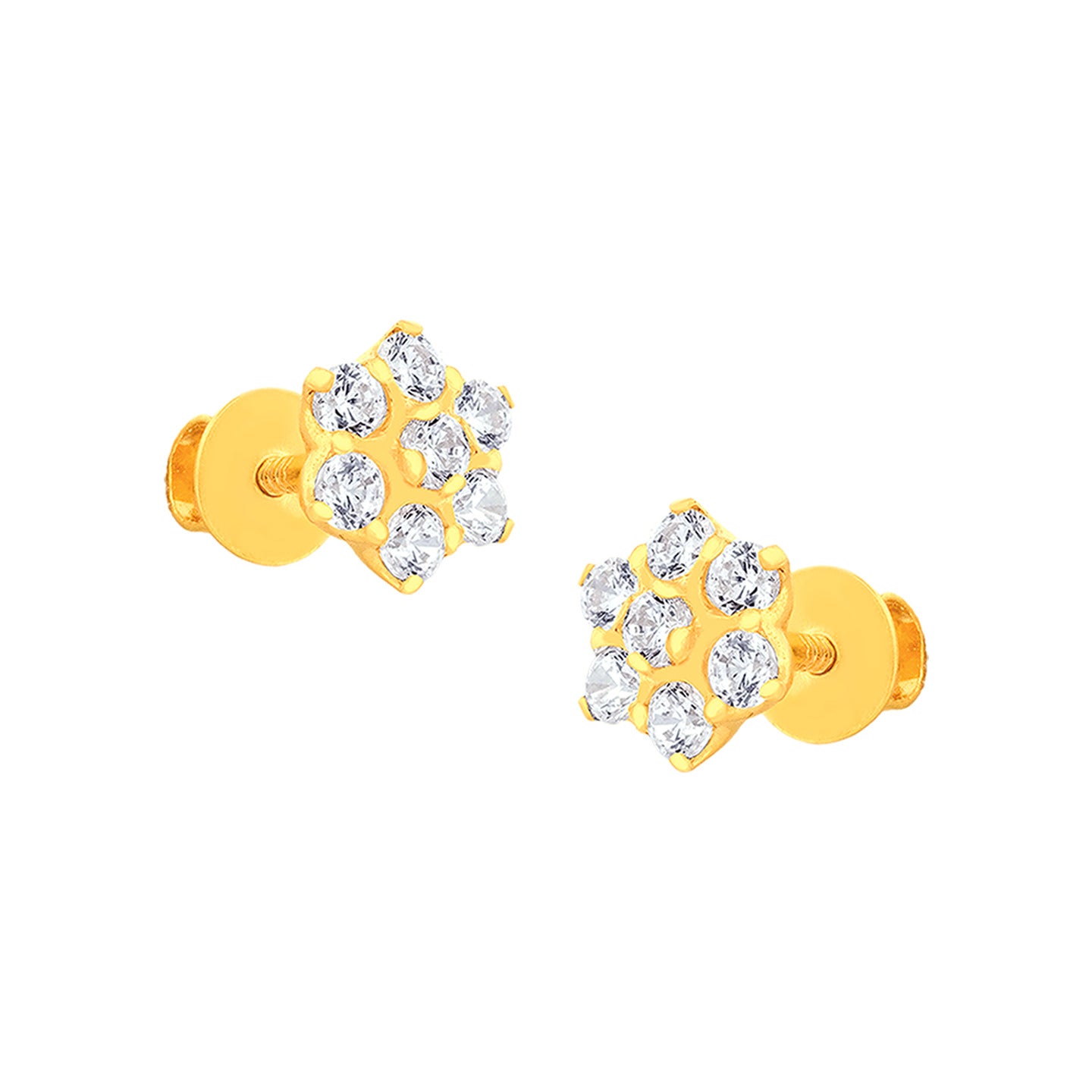 22k Yellow Gold Cubic Zirconia Stud Earrings measuring 7.72mm length x 7.72mm width. Total gold weight is approximately 1.462g.