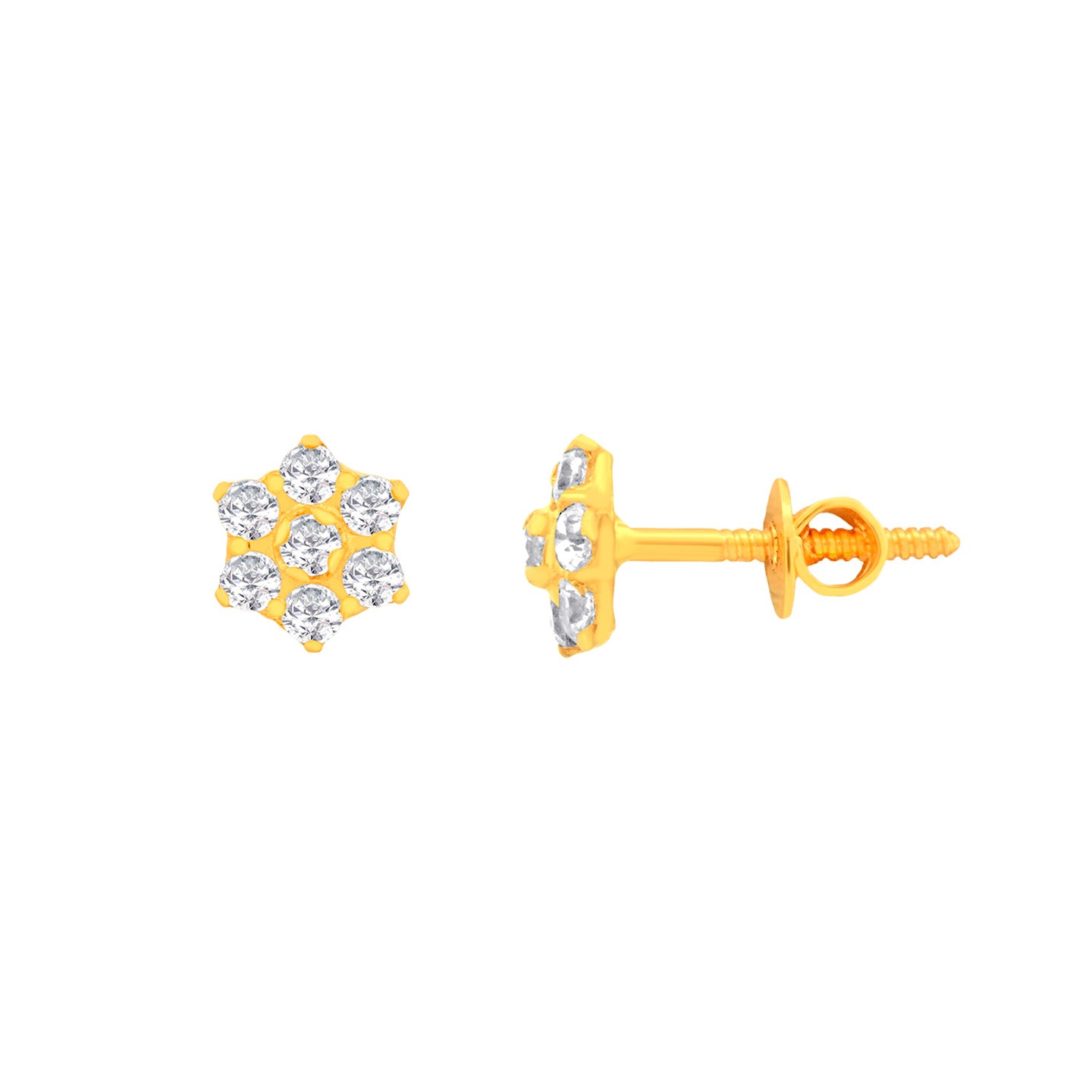 22k Yellow Gold Cubic Zirconia Stud Earrings measuring 7.52mm length x 7.52mm width. Total gold weight is approximately 1.523g.