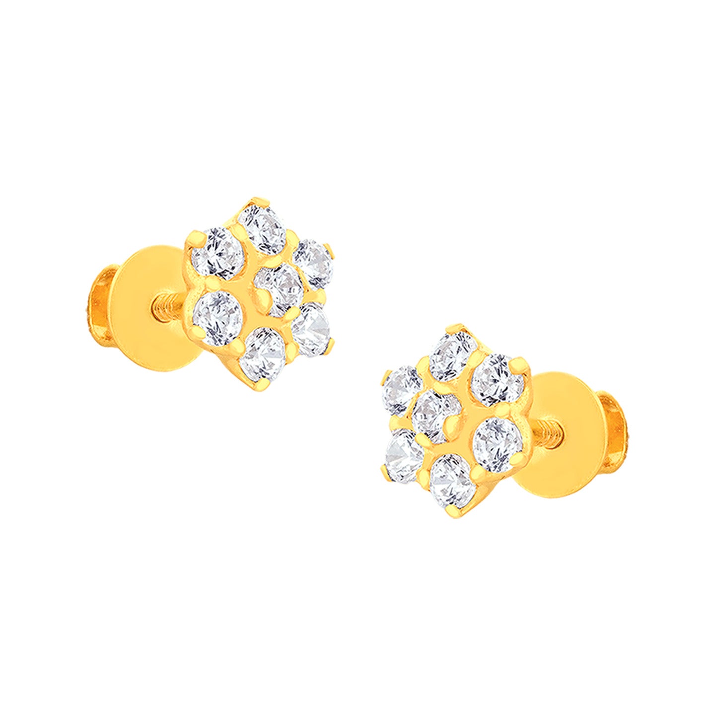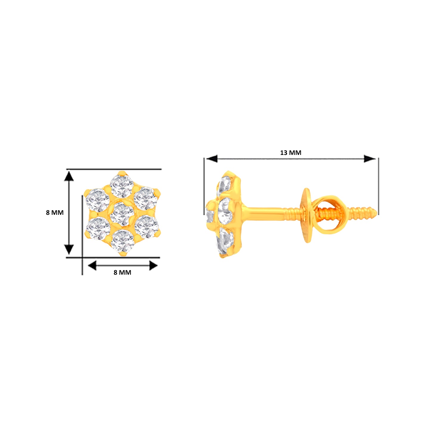 22k Yellow Gold Cubic Zirconia Stud Earrings measuring 7.91mm length x 7.91mm width. Total gold weight is approximately 1.542g.