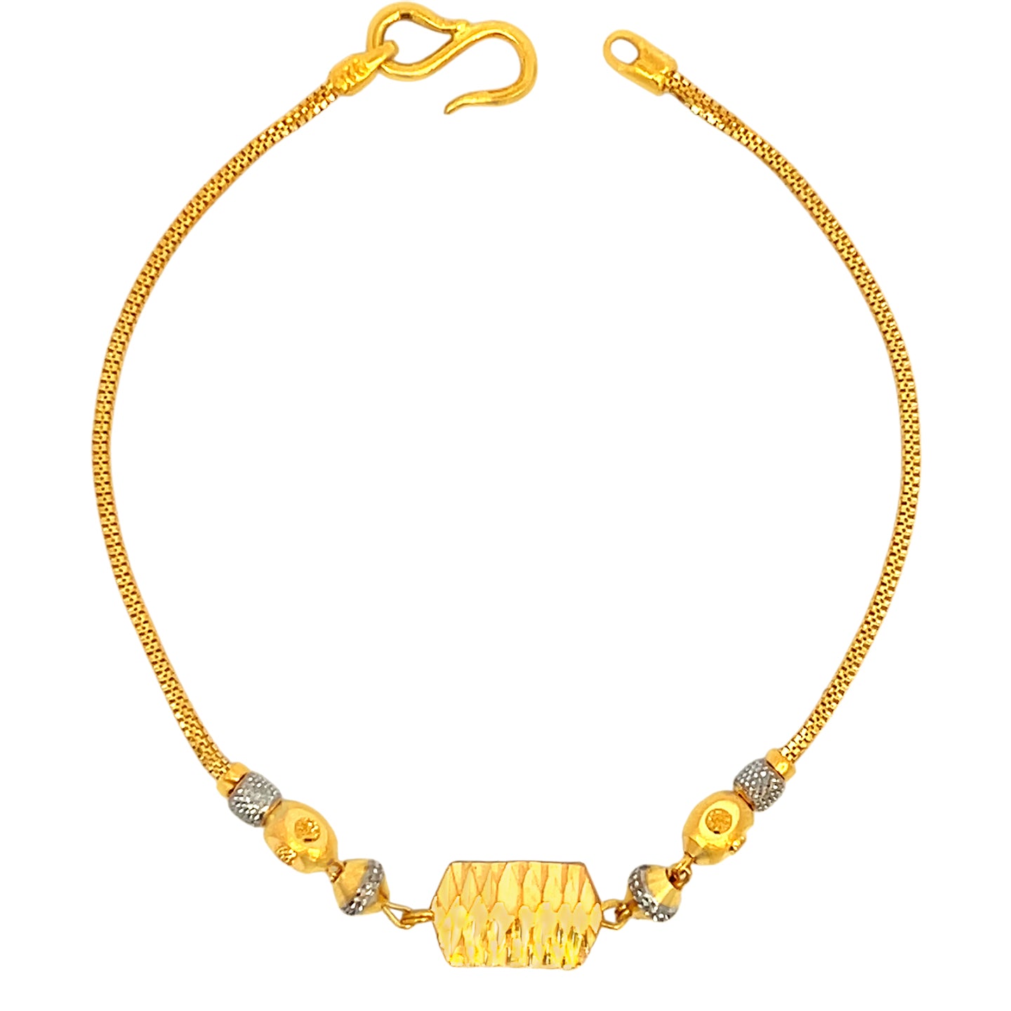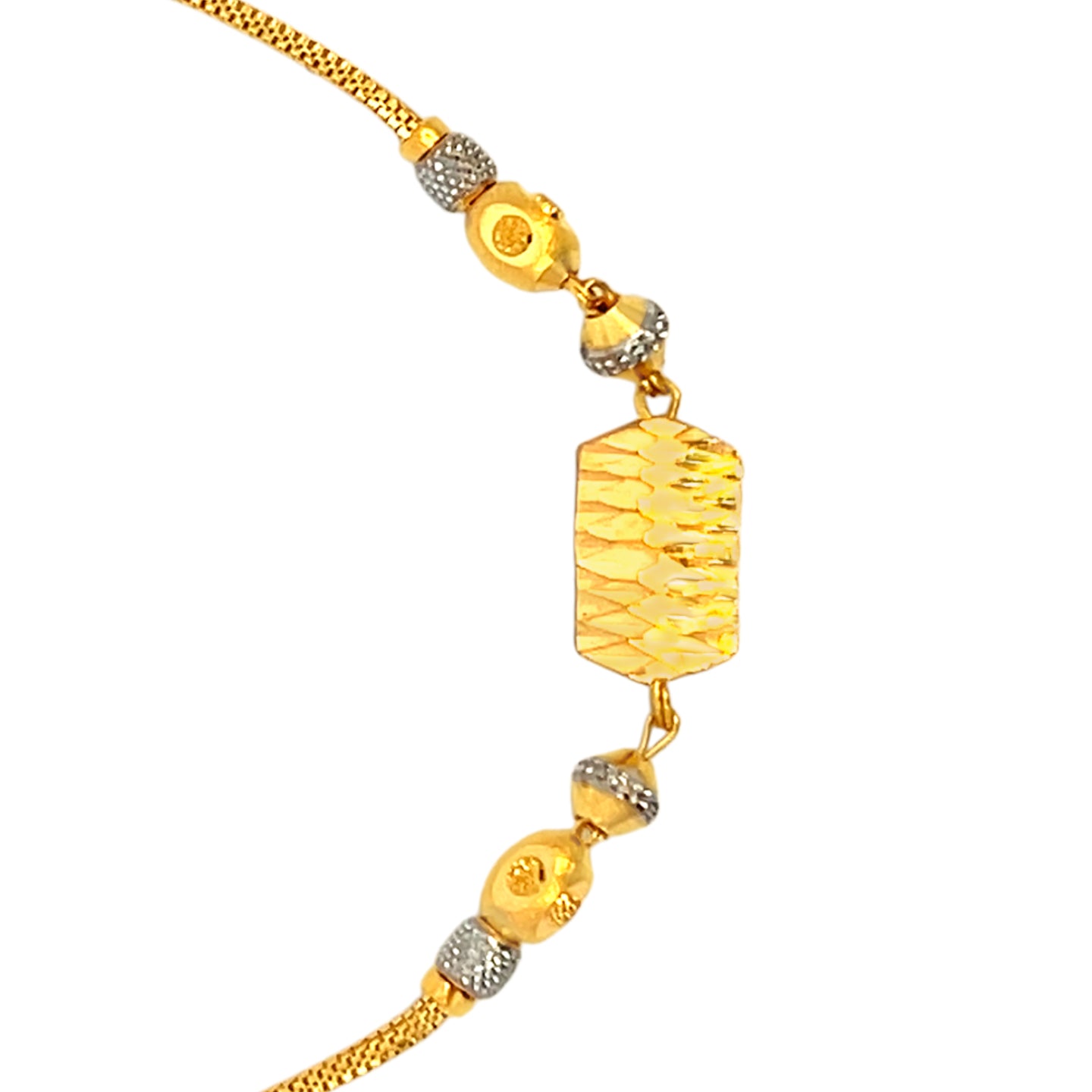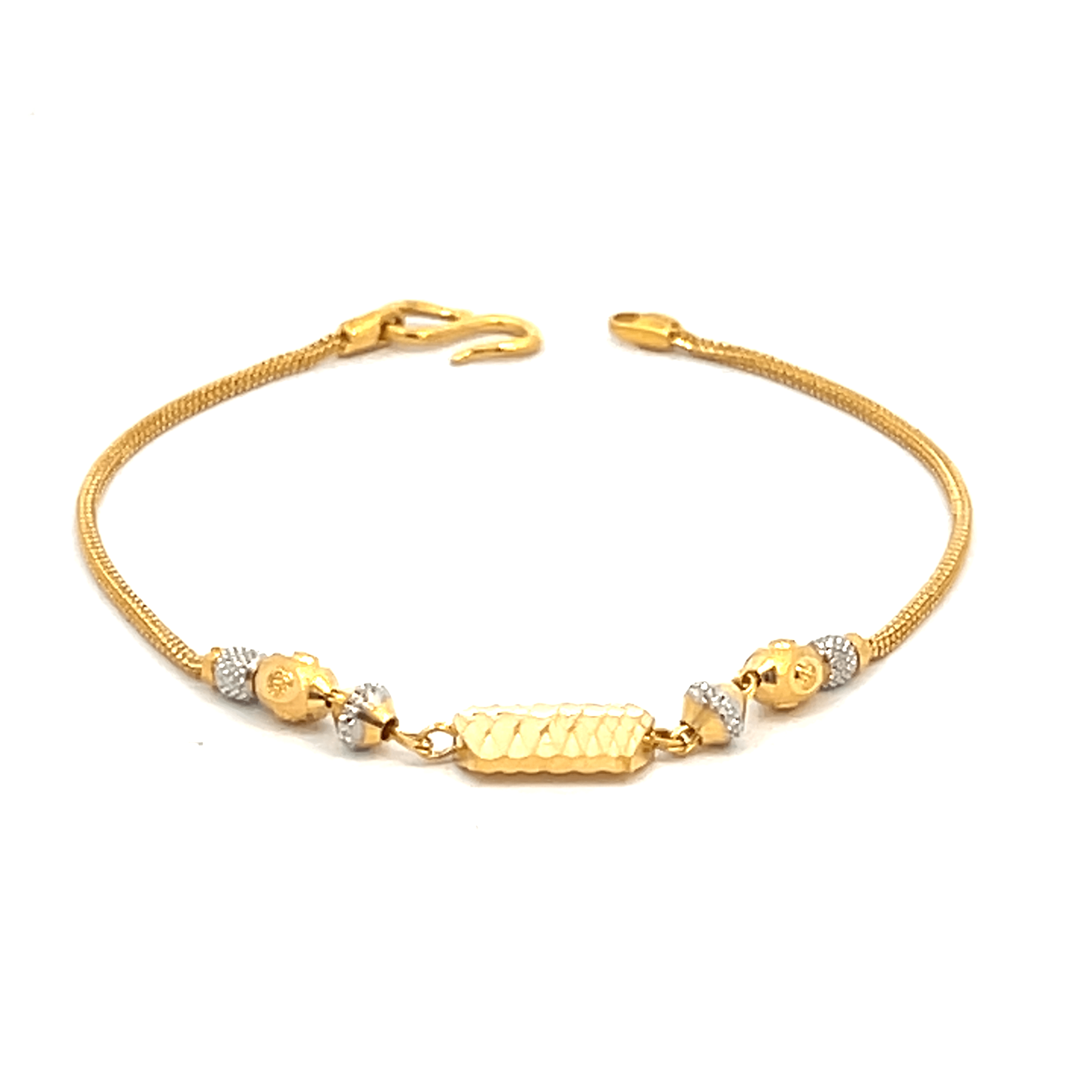 22K Yellow Gold Two-Tone Fancy Cocktail Bracelets measuring 7 inch length. Total gold weight is approximately 4.56g.