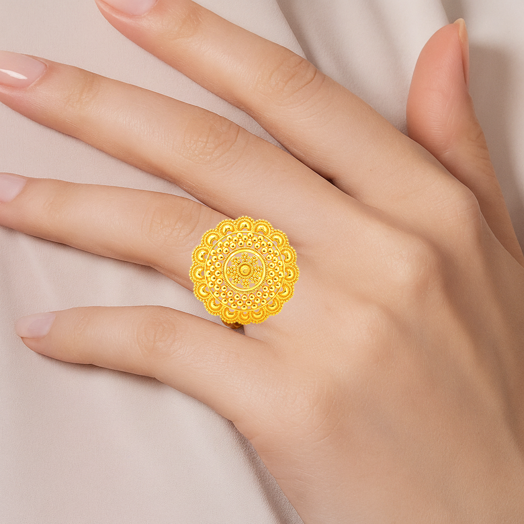 22k Yellow Gold Filigree Adjustable Rings in size 6 - 10. Total gold weight is approximately 5.95g
