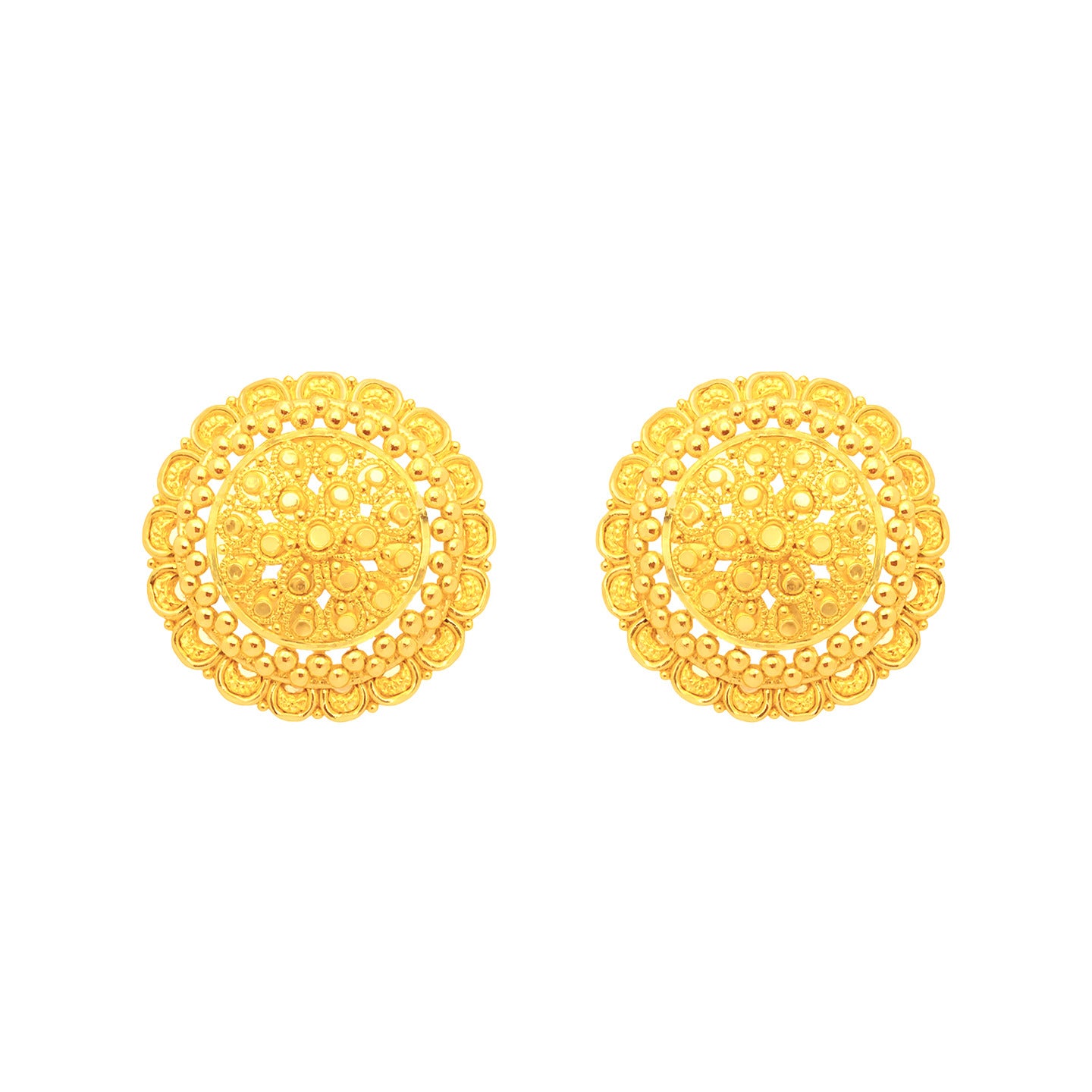 22k Yellow Gold Filigree Earrings measuring 21mm length x 21mm width. Total gold weight is approximately 10.14g.