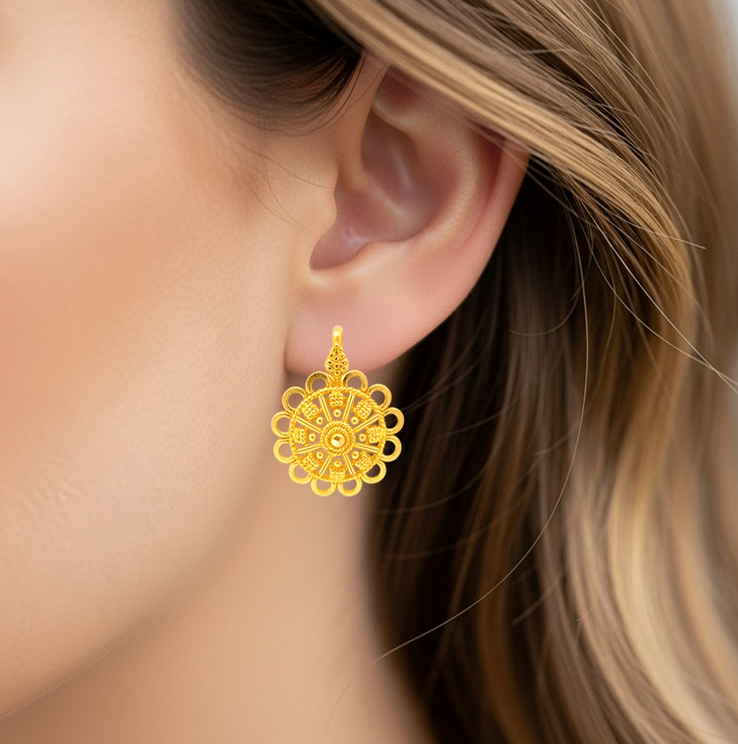 22k Yellow Gold Filigree Earrings in size . Total gold weight is approximately 2.72g