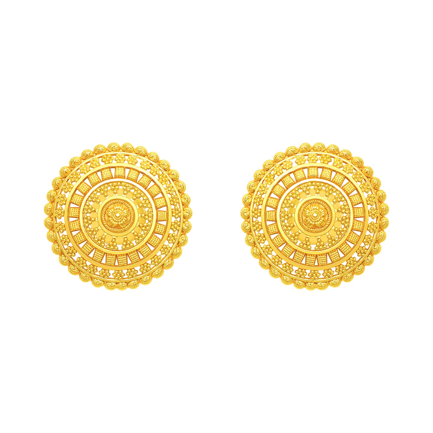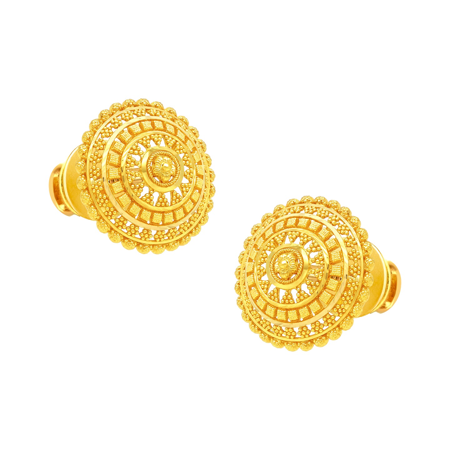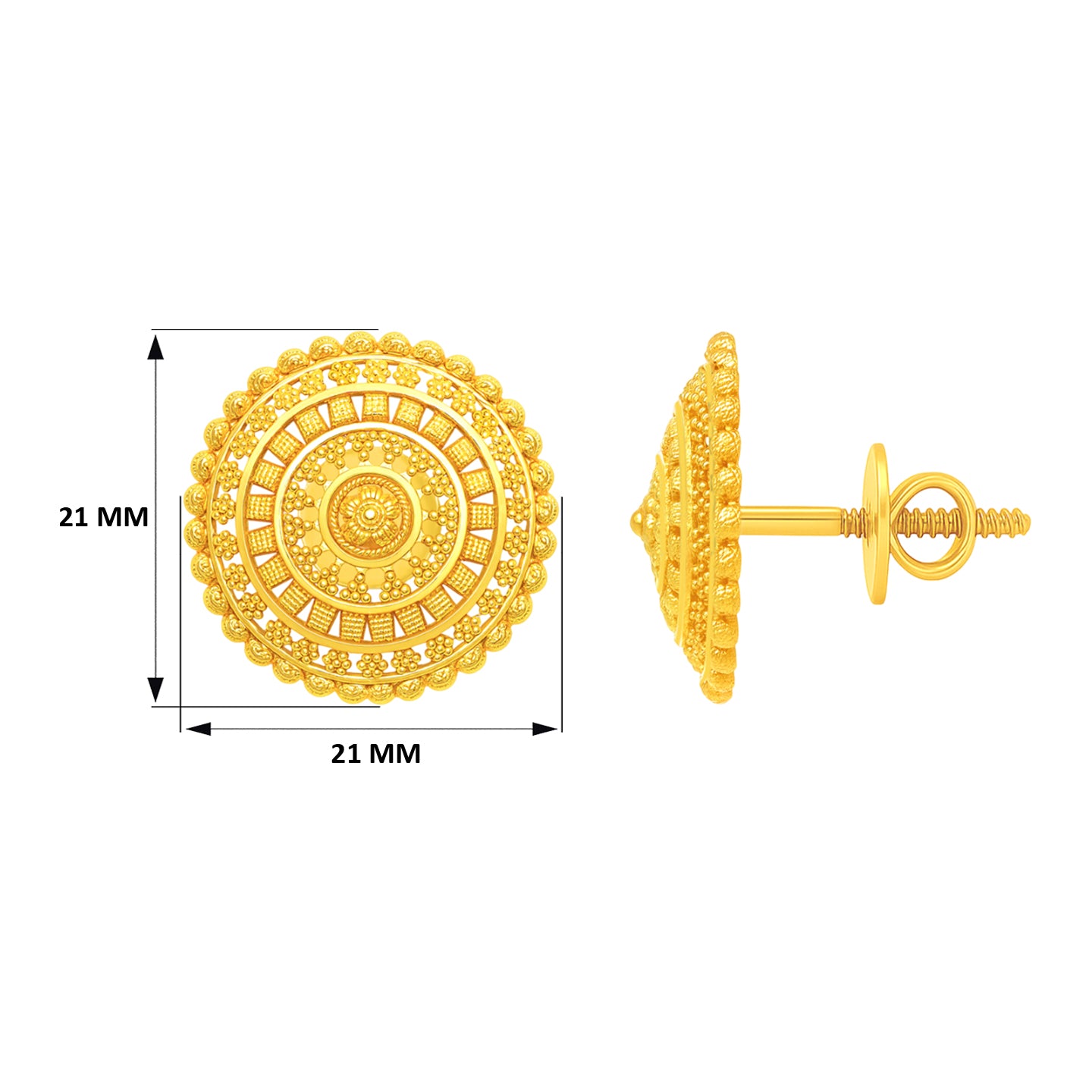 22k Yellow Gold Filigree Earrings measuring 21mm length x 21mm width. Total gold weight is approximately 7.81g.