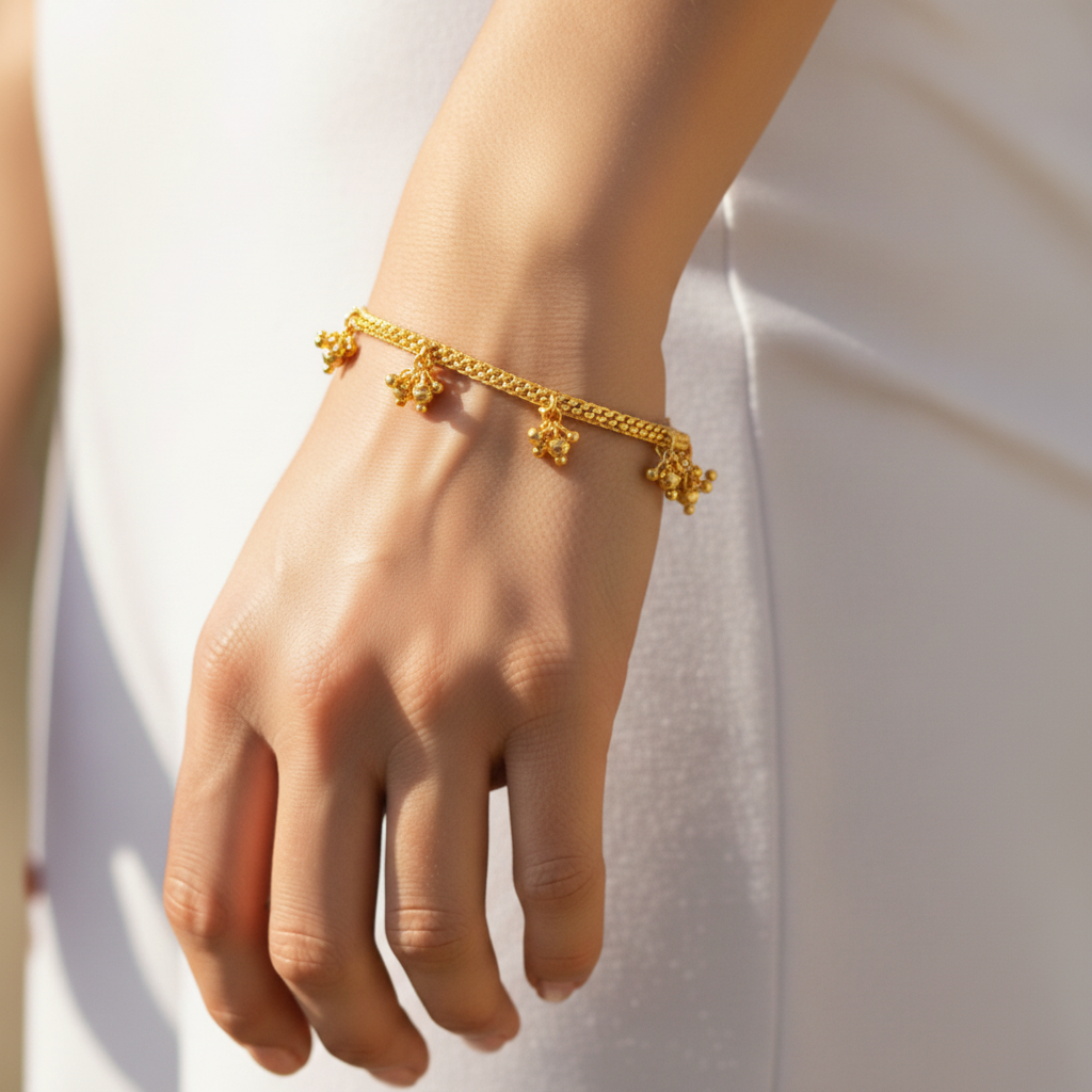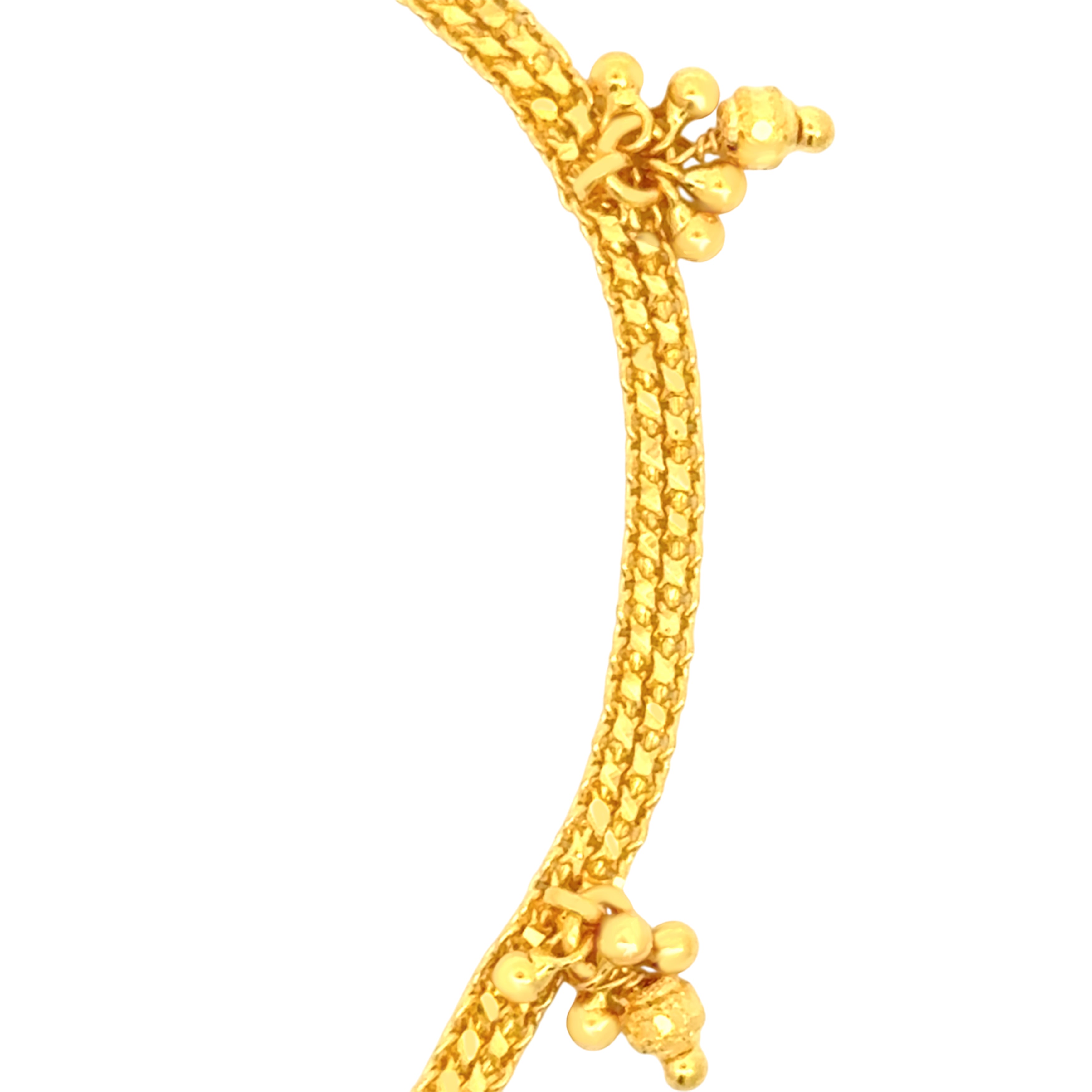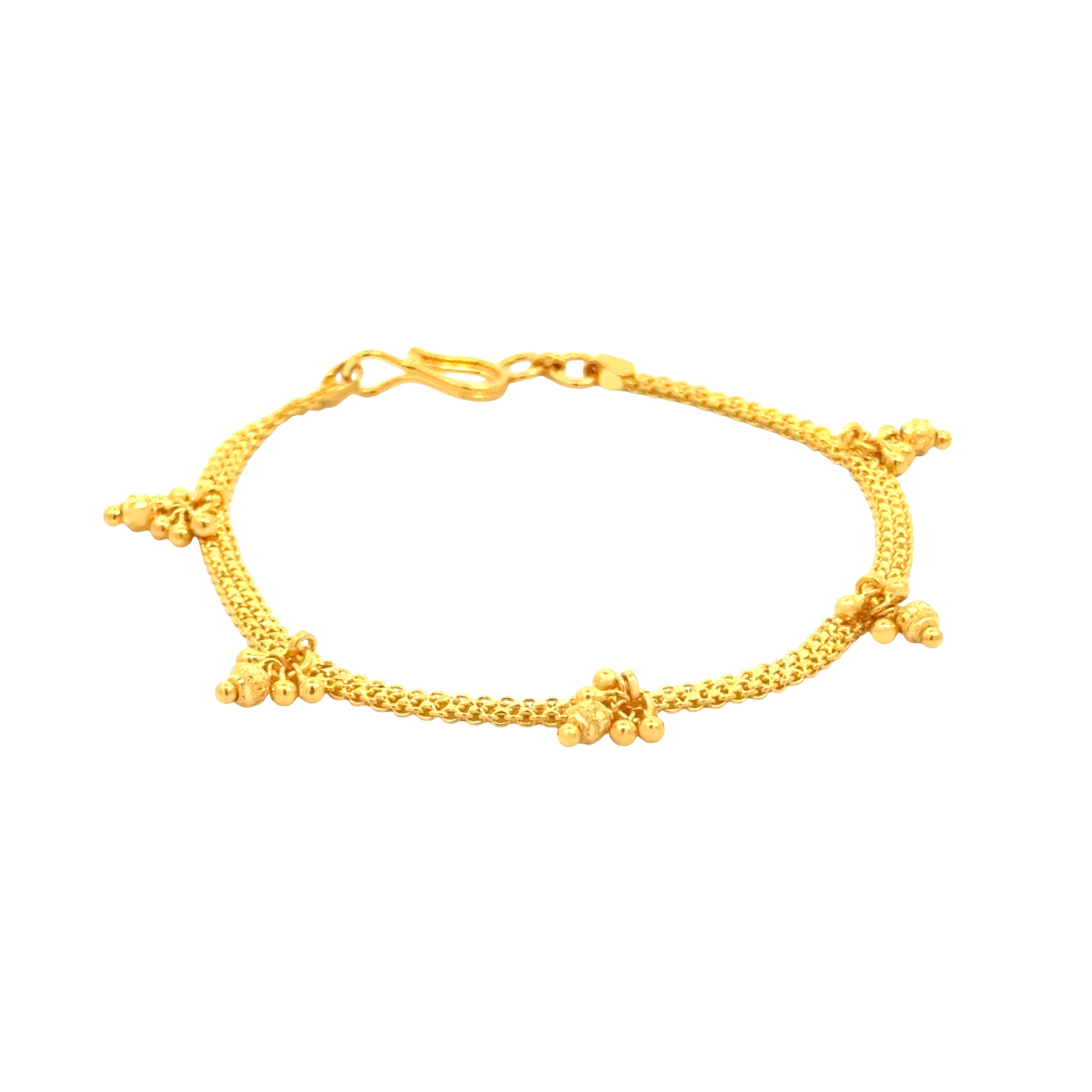 22k Yellow Gold Filigree Enchanting Charm Bracelet measuring 3mm thickness x 7.5 inch length.