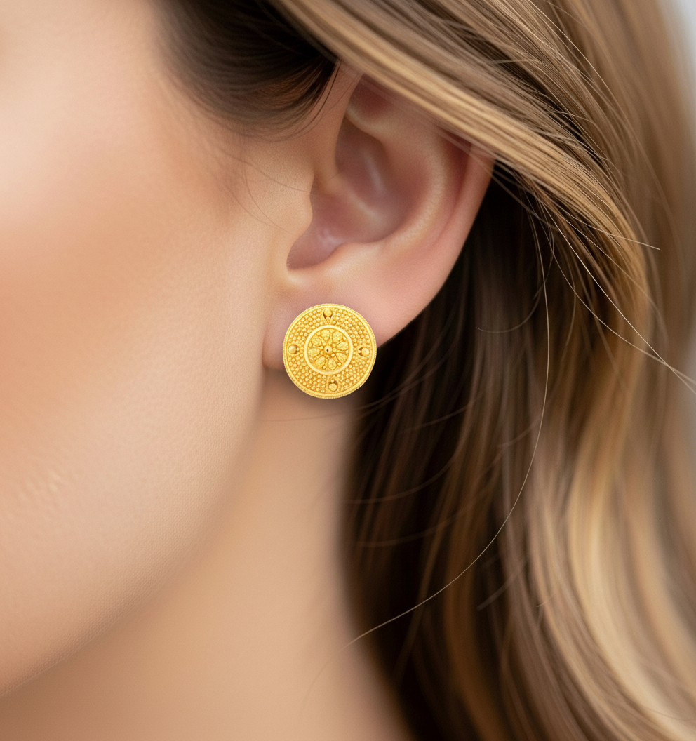 22k Yellow Gold Filigree Medium Earrings in size . Total gold weight is approximately 7.13g