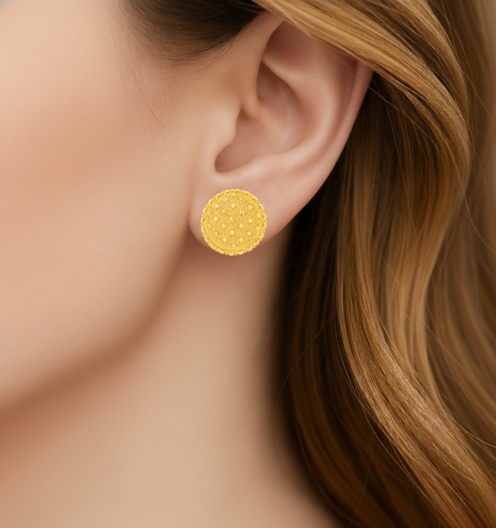 22k Yellow Gold Filigree Medium Earrings in size . Total gold weight is approximately 9.25g