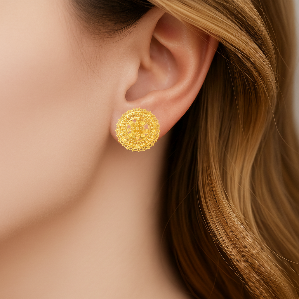 22k Yellow Gold Filigree Small Earrings in size . Total gold weight is approximately 5.85g