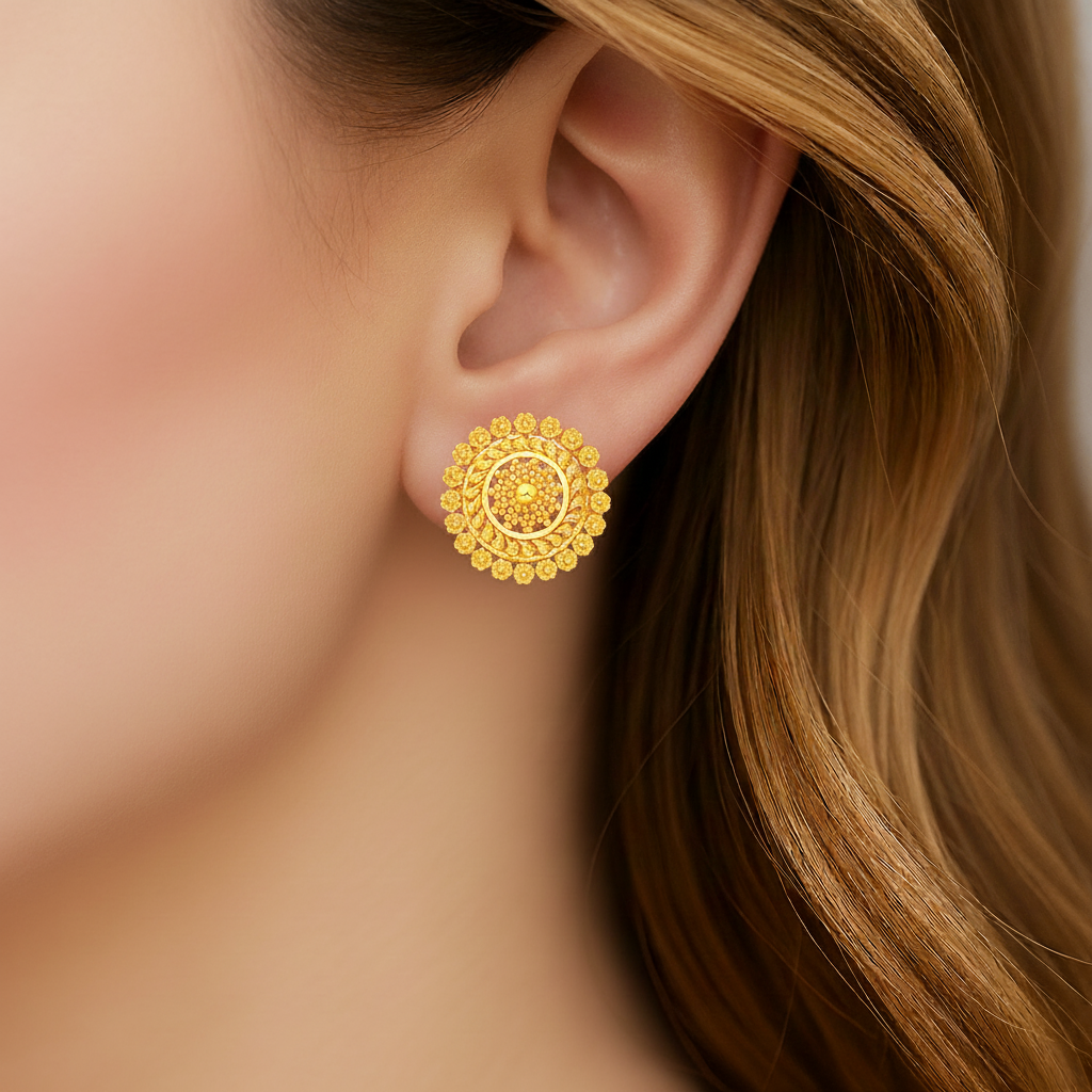 22k Yellow Gold Filigree Small Earrings in size . Total gold weight is approximately 5.9g