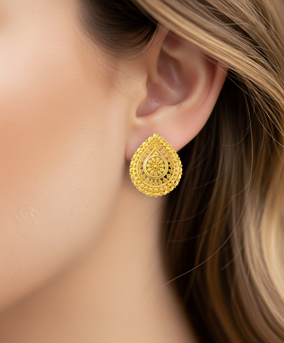 22k Yellow Gold Filigree Teardrop Earrings in size . Total gold weight is approximately 9.62g