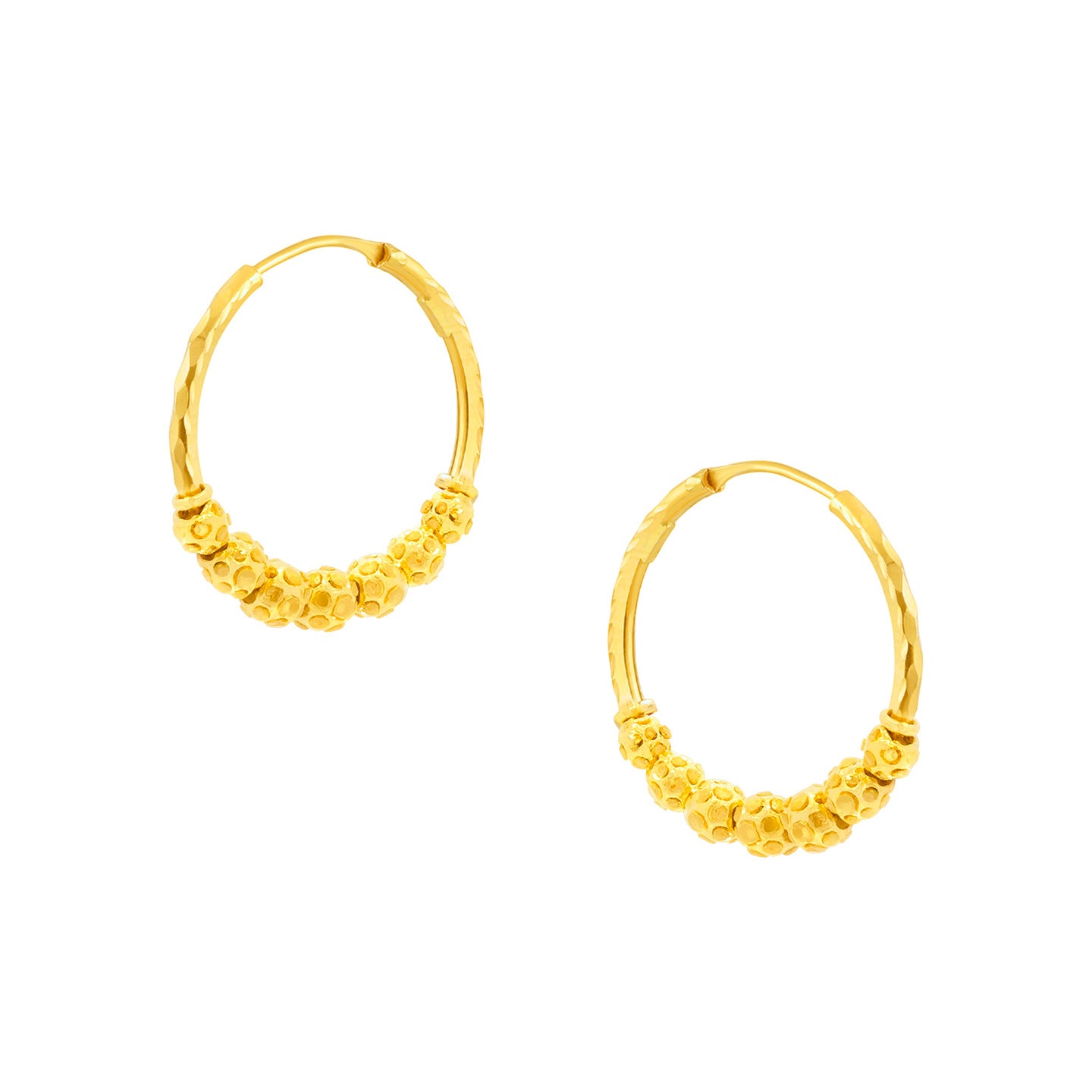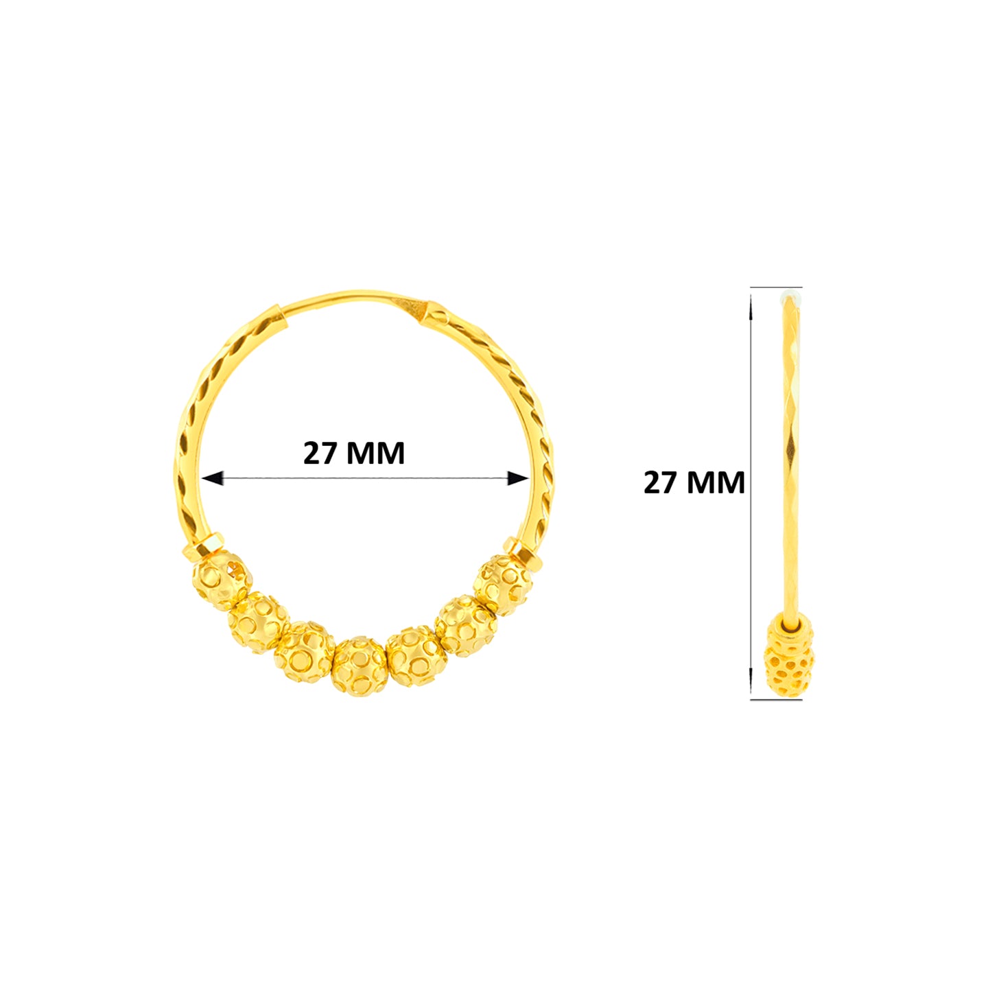 22k Yellow Gold Large Shimmery Beaded Earrings measuring 27mm width x 27mm length. Total gold weight is approximately 7.17g.